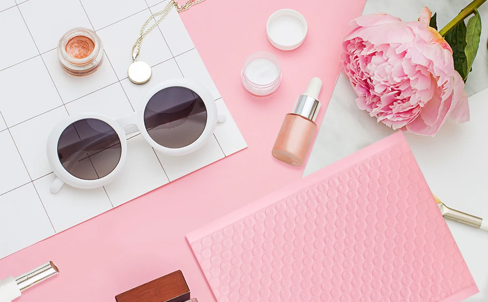 100 шт., светло-розовые пузырчатые конверты, пакеты для транспортировки, полиэтиленовые пакеты для самостоятельной Печати, водонепроницаемые подарочные пакеты для экспресс-доставки