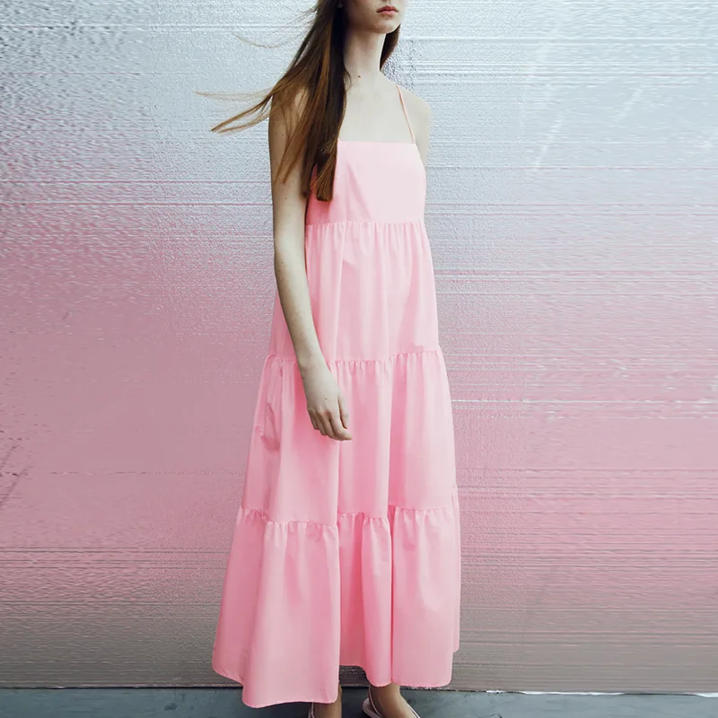 Платье-камисоль женское однотонное ТРАПЕЦИЕВИДНОЕ, летнее, 2021