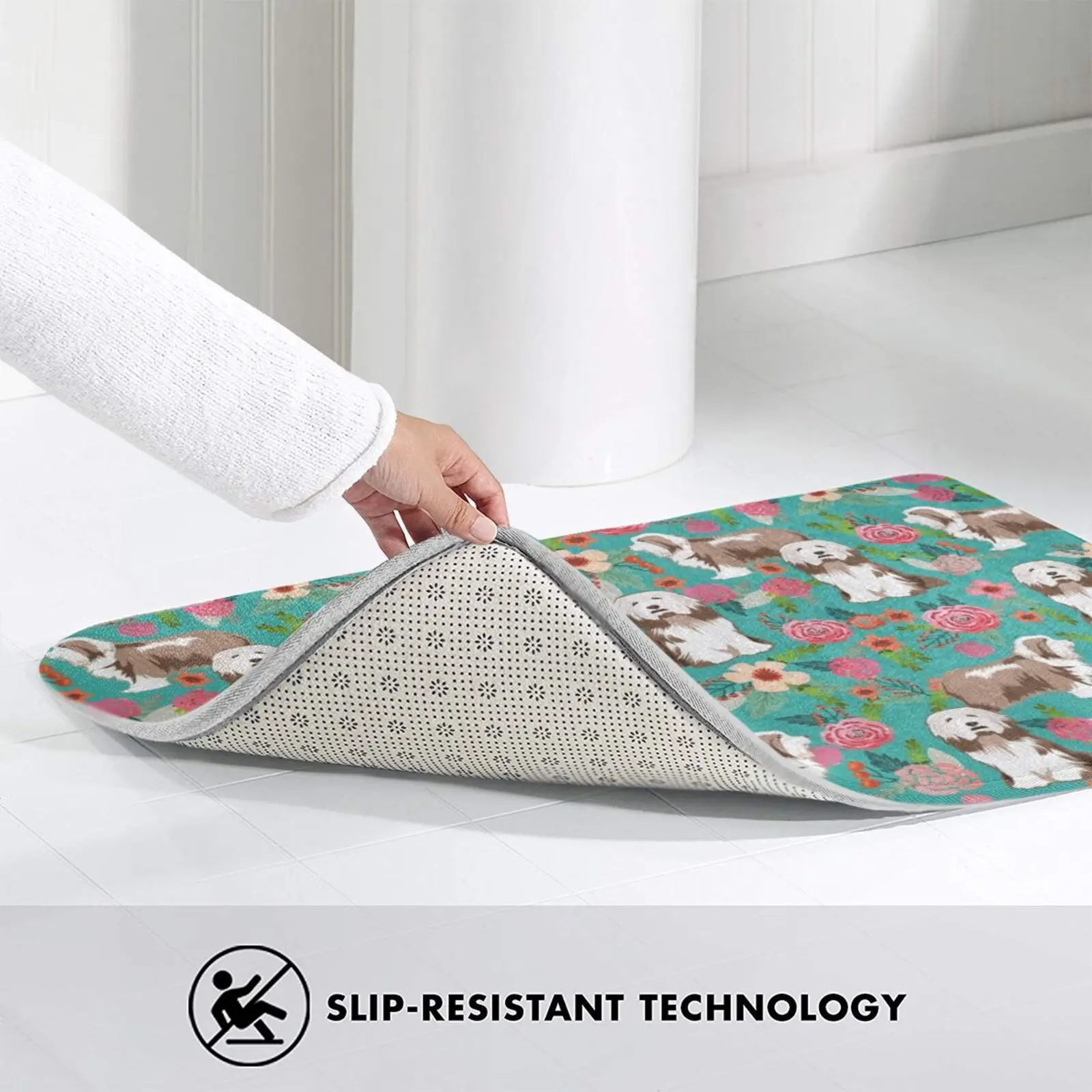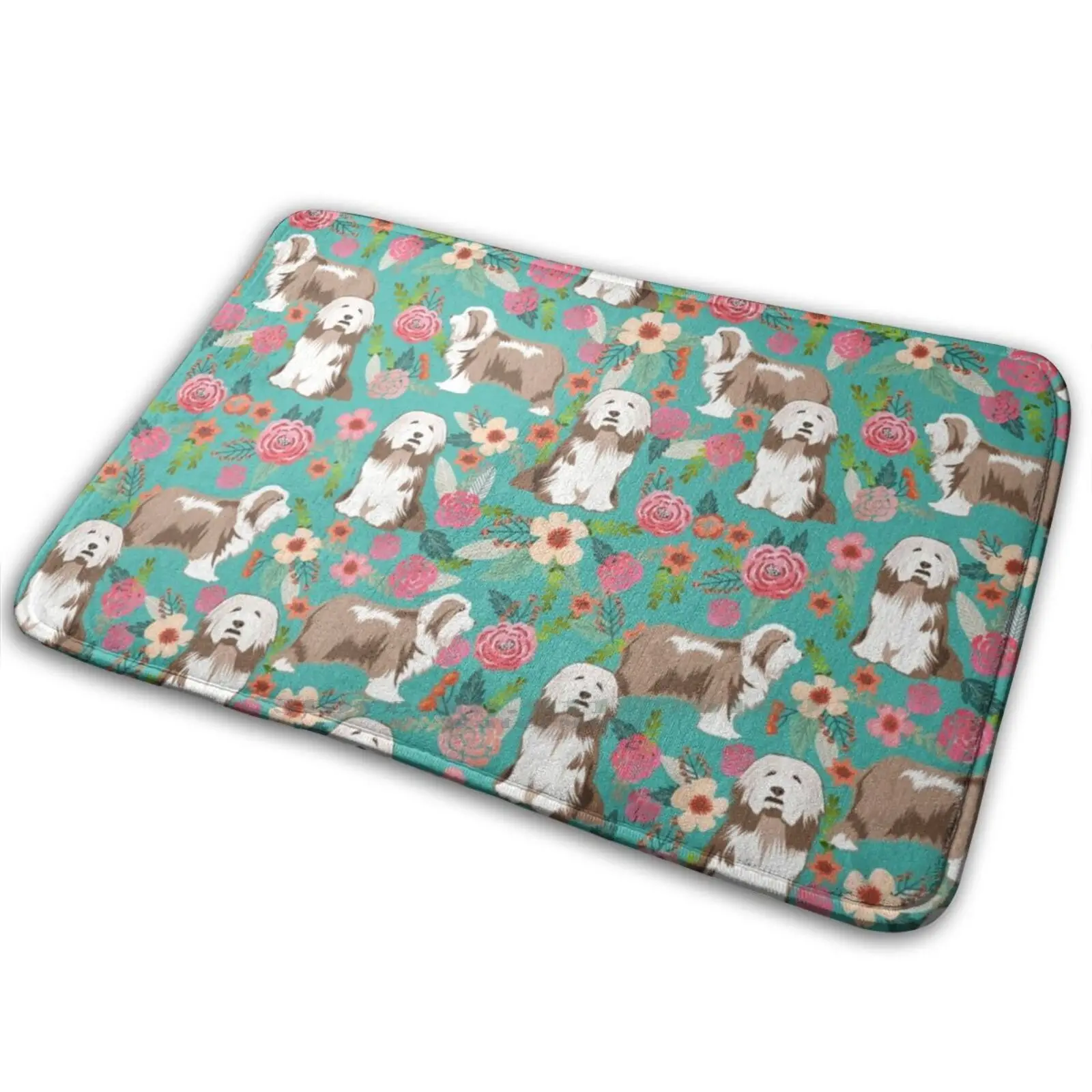 Бородатый колли цветы шаблон-милая собака дизайн, бородатый колли коврик ковер анти-скольжение Спальня входная дверь коврик Басенджи