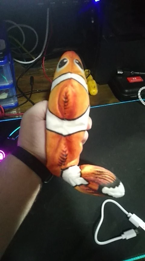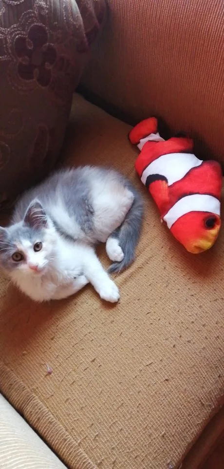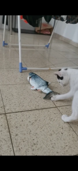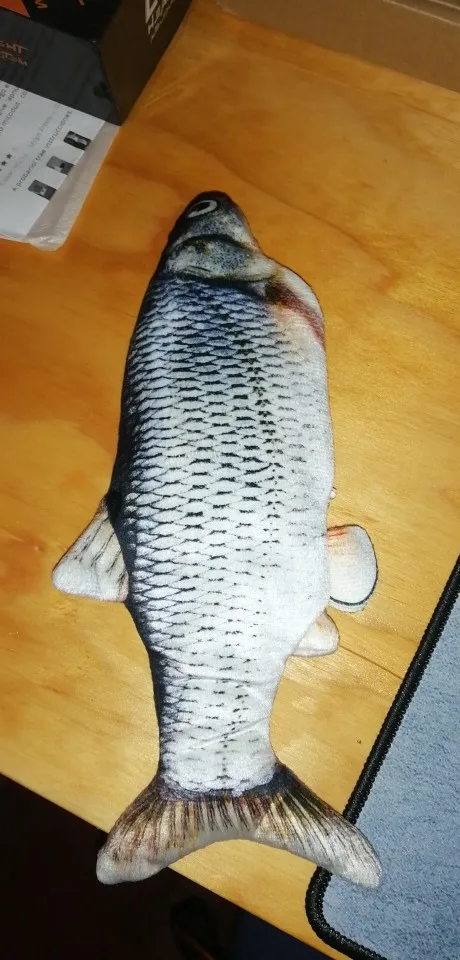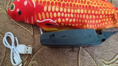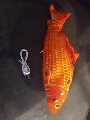 Моему коту это не понравилось, но так как плюш работает, хвост издает звук, который его напугал. Рыба движется очень хорошо, чтобы активировать хвост, есть переключатель, и вы можете удалить устройство и положить его обратно. Он пришел с зарядным устройством USB в пластиковом пакете внутри дополнения. Вы можете мыть рыбу в стиральной машине, я рекомендую ее, потому что она пришла с странным запахом. Не покупайте с catnip дешевле, как это. The seller is very kind. Я рекомендую магазин, несмотря на то, что моей кошке не понравилась игрушка.