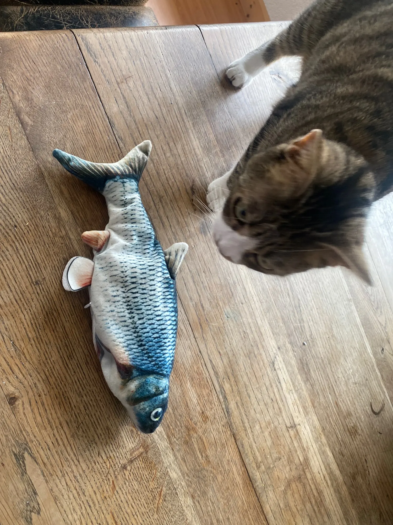 Я заказал две рыбы, одна из них работает отлично, другая, к сожалению, работает в течение 5 секунд, затем останавливается и ее необходимо включить вручную (и не автоматически, как вторая) Хотя мои кошки любили двигающегося :)