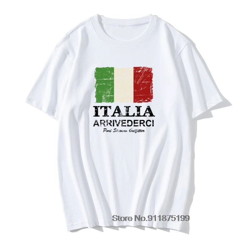 Хлопковая Винтажная футболка с итальянским флагом для мужчин, белые футболки, мужские топы, летняя футболка с круглым вырезом, топы для отдыха, футболка для студентов