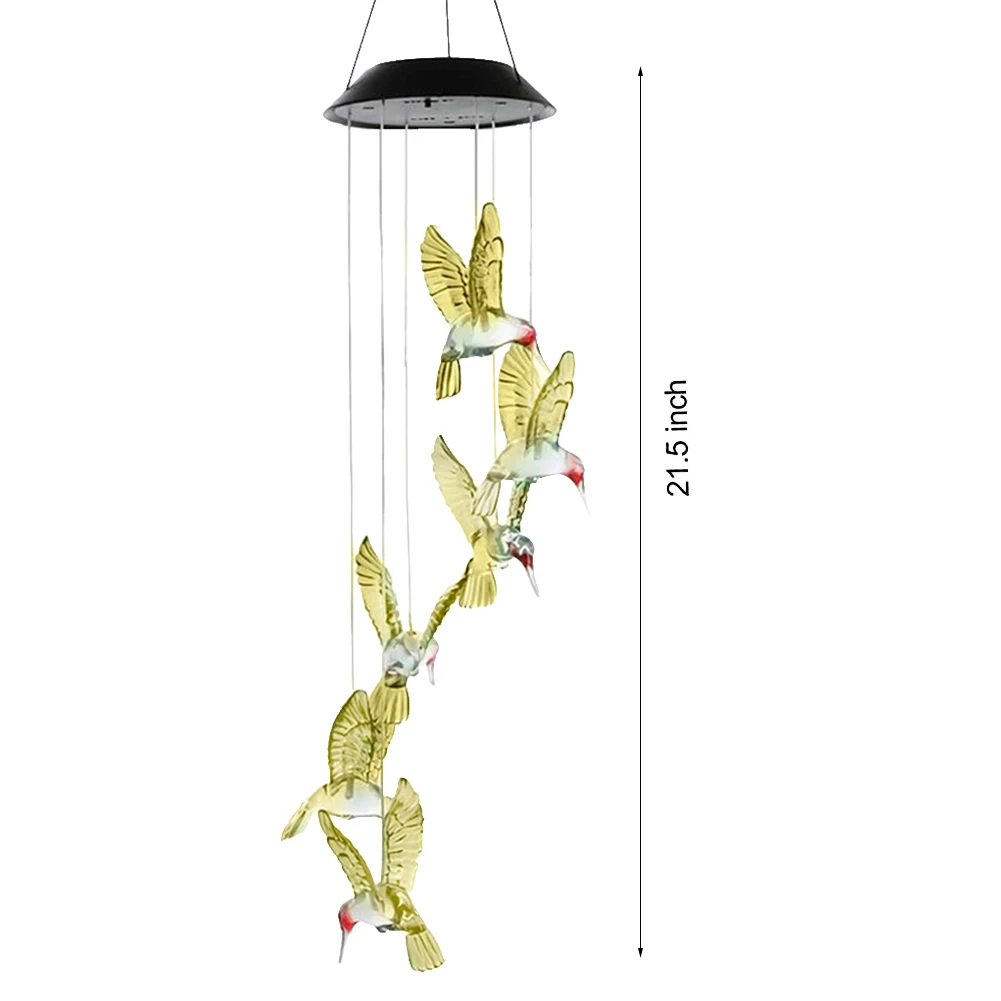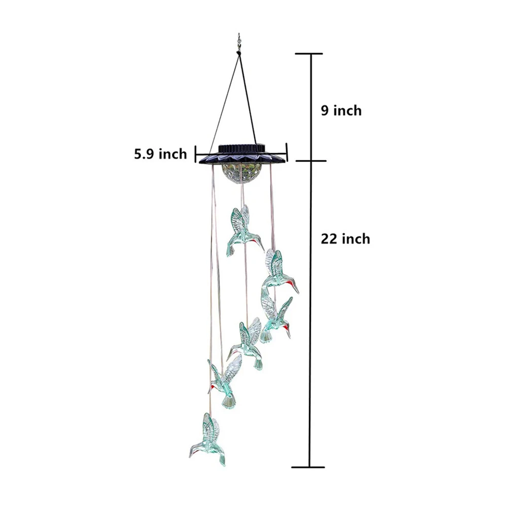 Колокольчик ветряной на солнечной энергии, меняющий цвет, с колибри...
