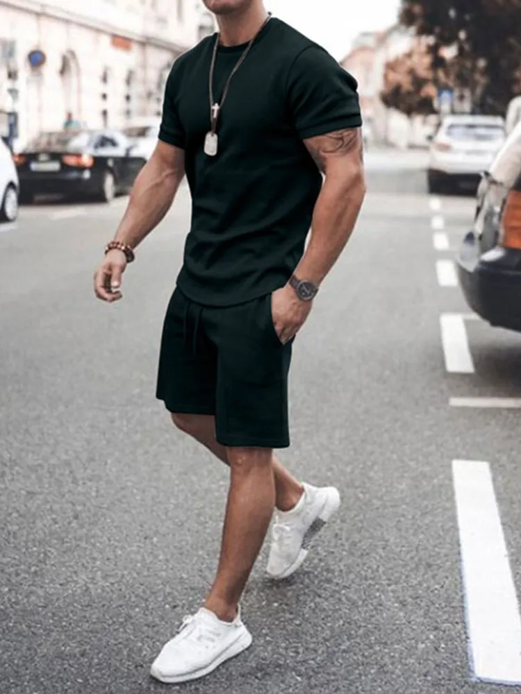 Мужской комплект из 2 предметов, Однотонная футболка с круглым выре...