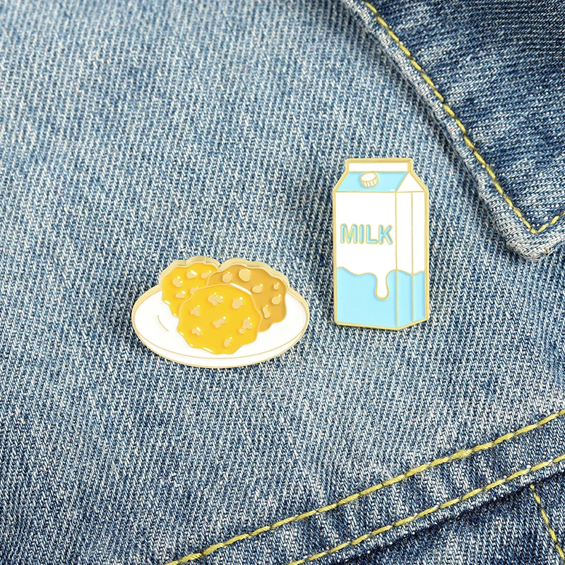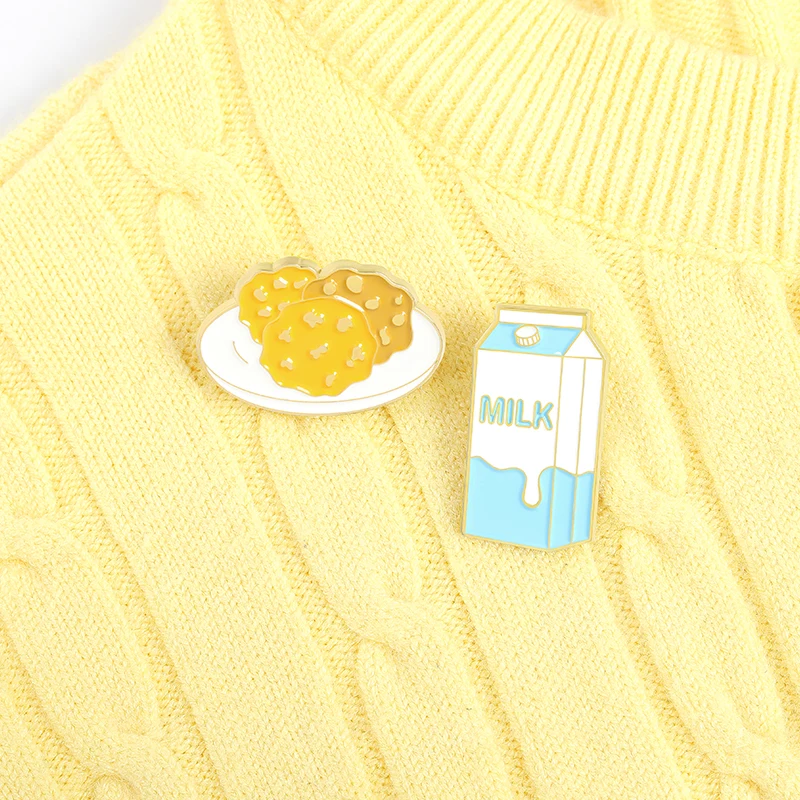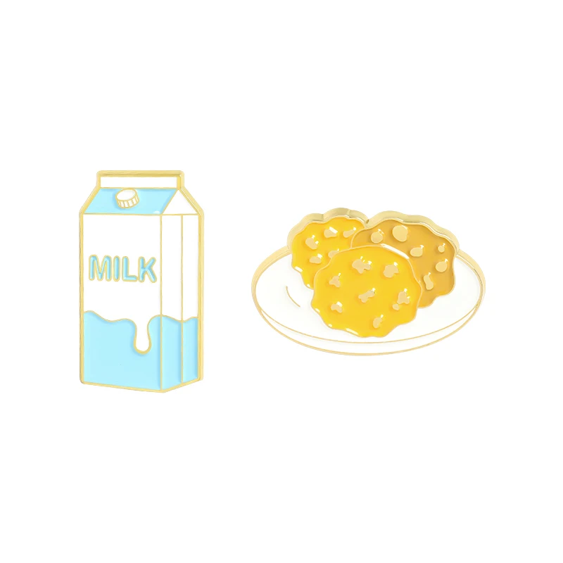 Жесткие эмалированные значки молоко и печенье, Коллекционирование милых металлических значков в виде еды, рюкзака, воротника, лацкана, модные украшения