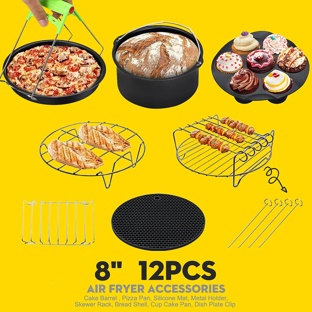 12 шт. аэрофритюрница для приготовления блюд без Аксессуары 8 дюймов подходит для Airfryer 5,2-5.8QT выпечки корзина пицца плита гриль горшок Кухня Пособия по кулинарии инструмент для вечерние