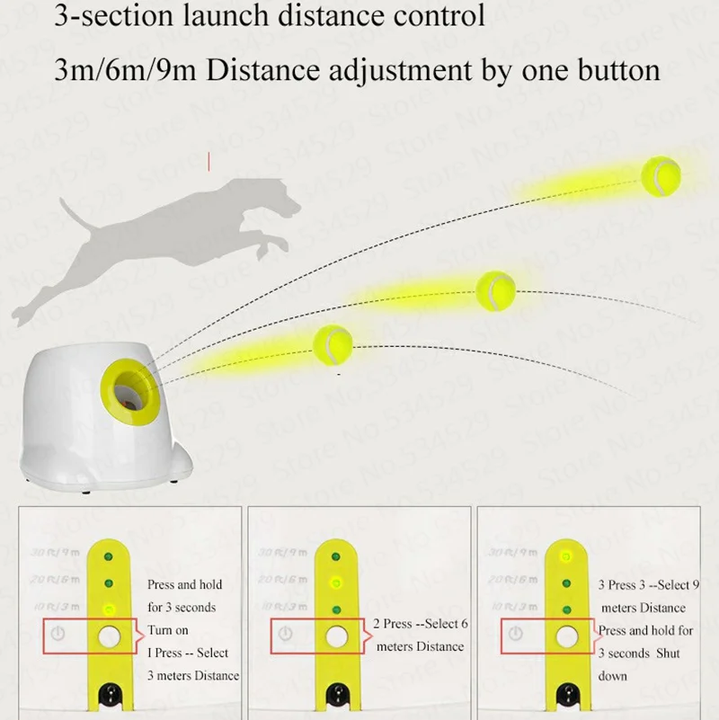 Он содержит шарик диаметром 3 5 см, шнур питания, пусковую установку и брошюру о продукте.Этот продукт дает собакам по всему миру возможность играть в наполнение сердцем. С ним ваша собака никогда больше не будет скучать. Это даст вам и вашим питомцам возможность играть.Как использоватьНажмите на выключатель питания, чтобы включить через три секунды, загорисветильник индикатор питания. Через три секунды после выключателя питания основная машина выключена.После запуска нажмите несколько выключателей питания, чтобы выбрать расстояние выброса 3 метра/6 метров/9 метров.Пересечение мяча в нижней части теннисного мяча имеет инфракрасный датчик. Сканируя каждые 10 секунд, хост может доставлять мяч каждые 10 секунд.Примечание: конструкция позволяет шару запускать вращение внутреннего ролика, поэтому при использовании появляются некоторые голоса, что является нормальной ситуацией.