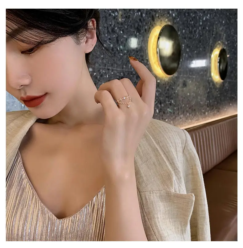 Женское открытое Золотое кольцо со звездой, необычное Привлекательное кольцо в Корейском стиле для свадебной вечеринки, комплект ювелирных украшений, 2021