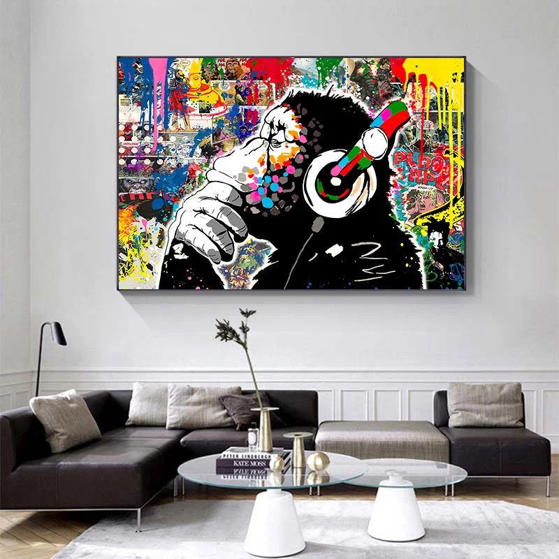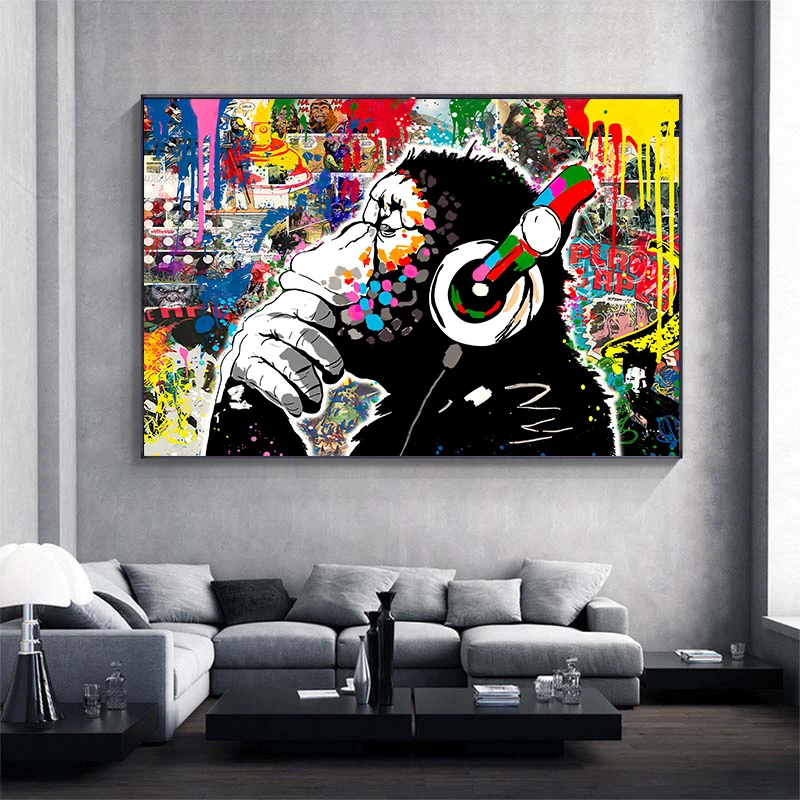 Граффити DJ обезьяна на холсте Плакаты и принт Бэнкси животных настенные картины картинки для Гостиная домашний декор