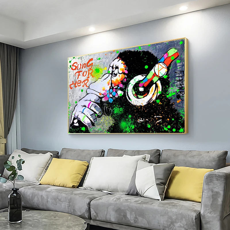 Граффити DJ обезьяна на холсте Плакаты и принт Бэнкси животных наст...