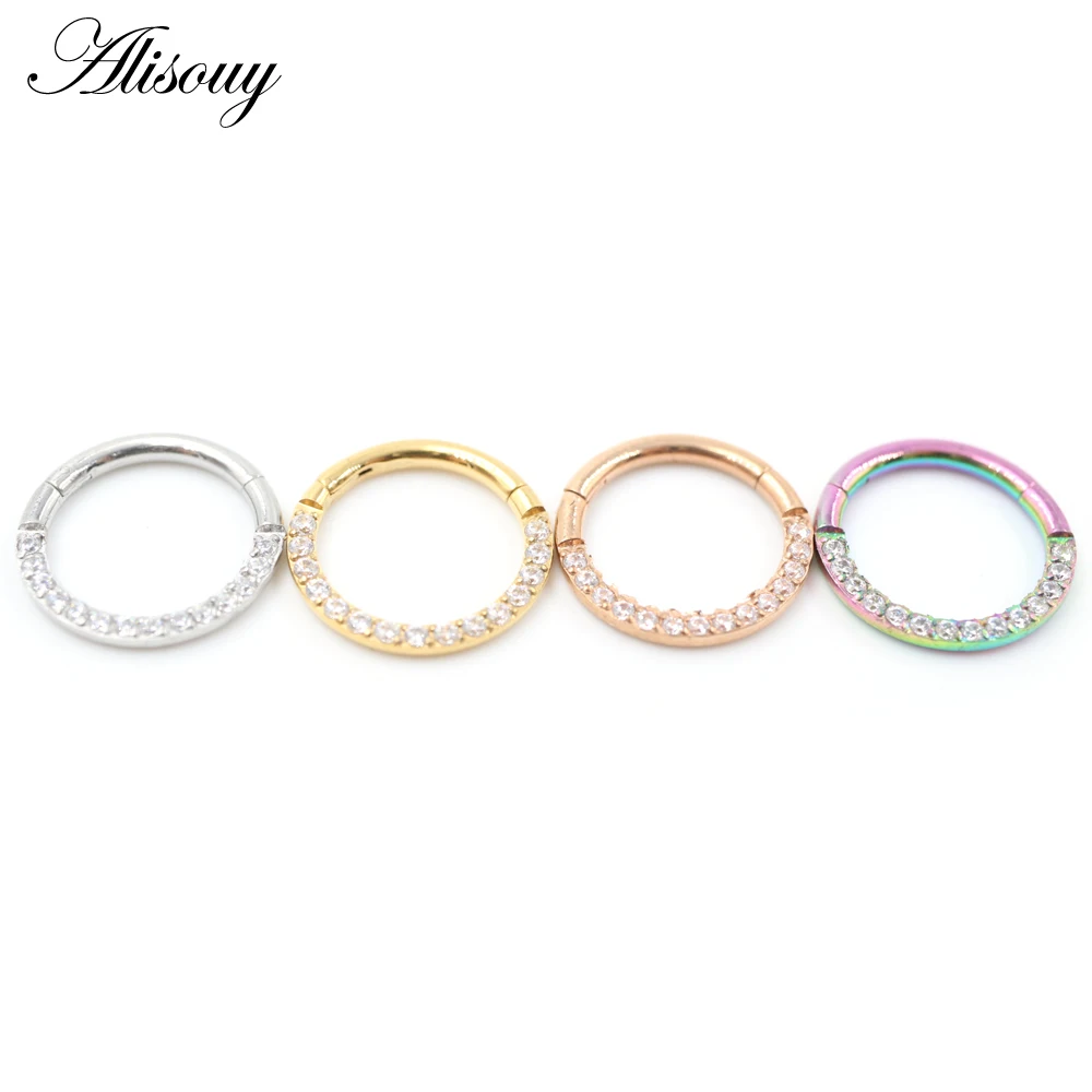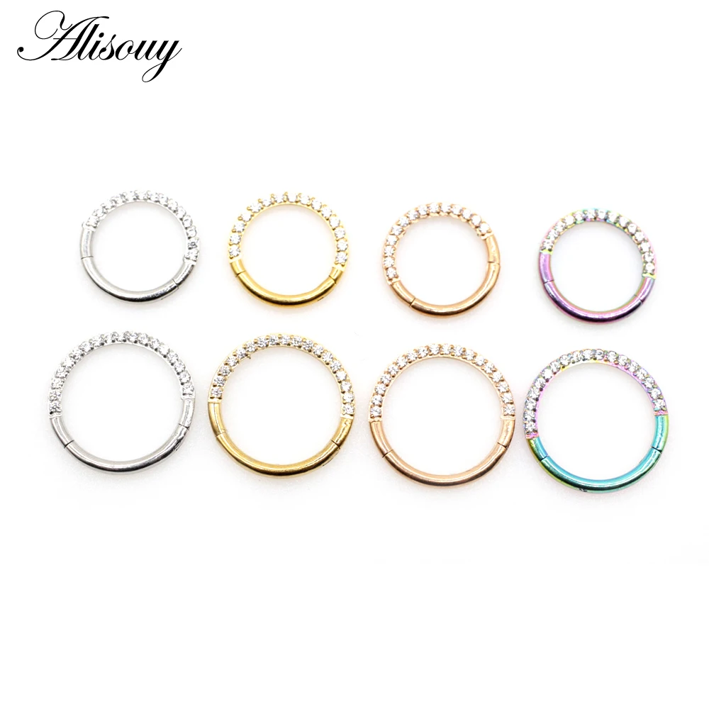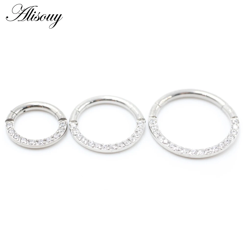 Серьги, Надеваемые На ушной хрящ Alisouy из хирургической нержавеющей стали 316L, сегментное кольцо для пирсинга с кристаллом циркона, 1 шт.