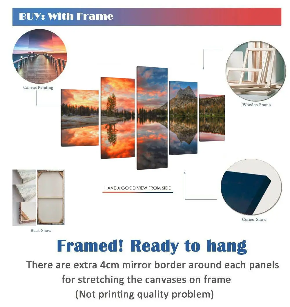5 панелей HD Печать на холсте картина на дереве Настенная картина д...