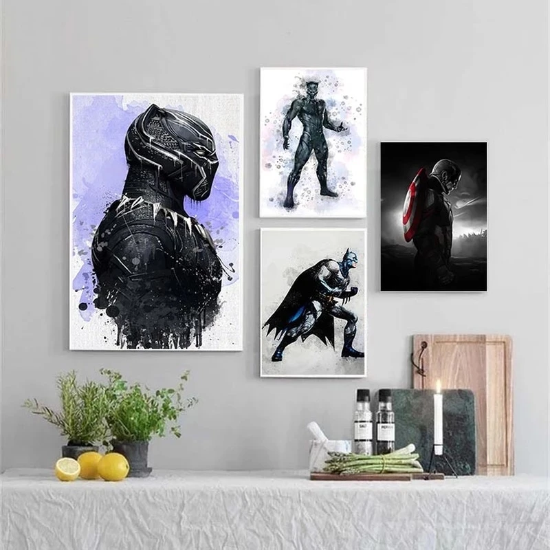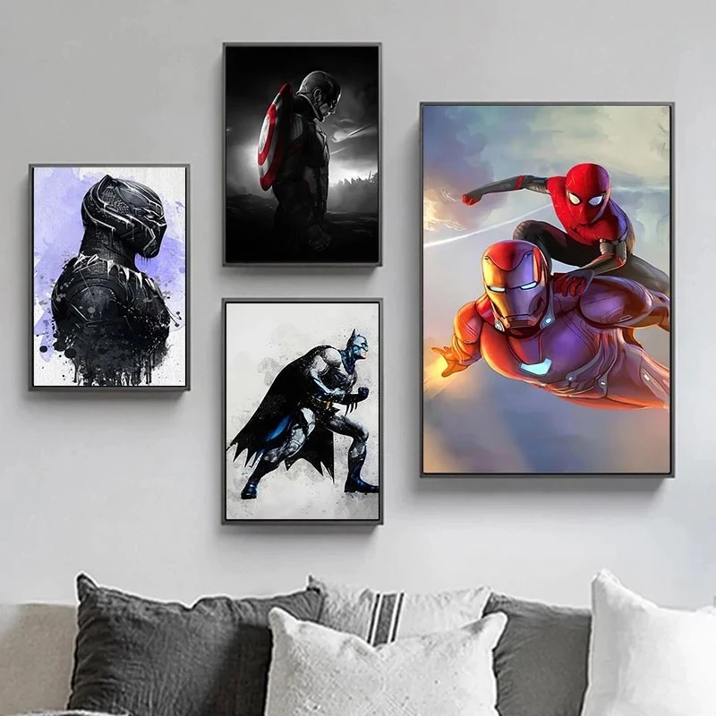 Марвел холст Мстители Бэтмен Капитан Америка Железный человек холст плакат мультфильм холст картины Человек-паук настенное искусство для гостиной