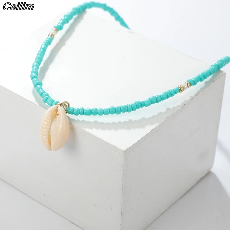 Женское ожерелье с подвеской в виде ракушки из натурального камня