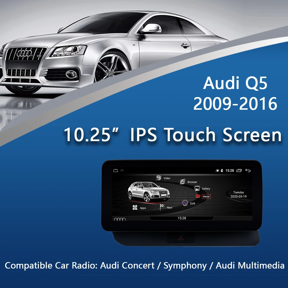 Автомобильный GPS-навигатор для Audi Q5 10,25-2009, 2016 "IPS сенсорный экран, Wi-Fi, 2 + 32 ГБ ОЗУ, Google BT, мультимедийная система, радио, плеер Andrioid 10, Carplay