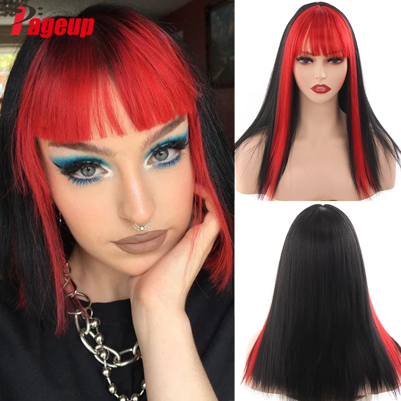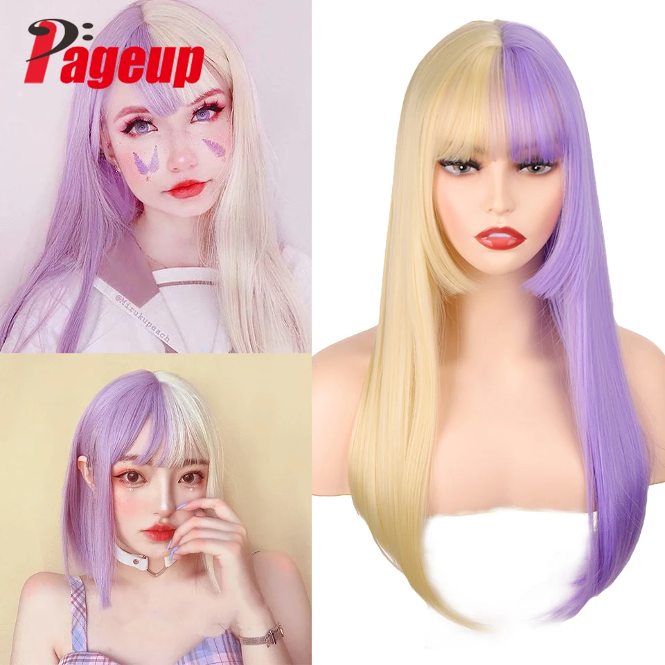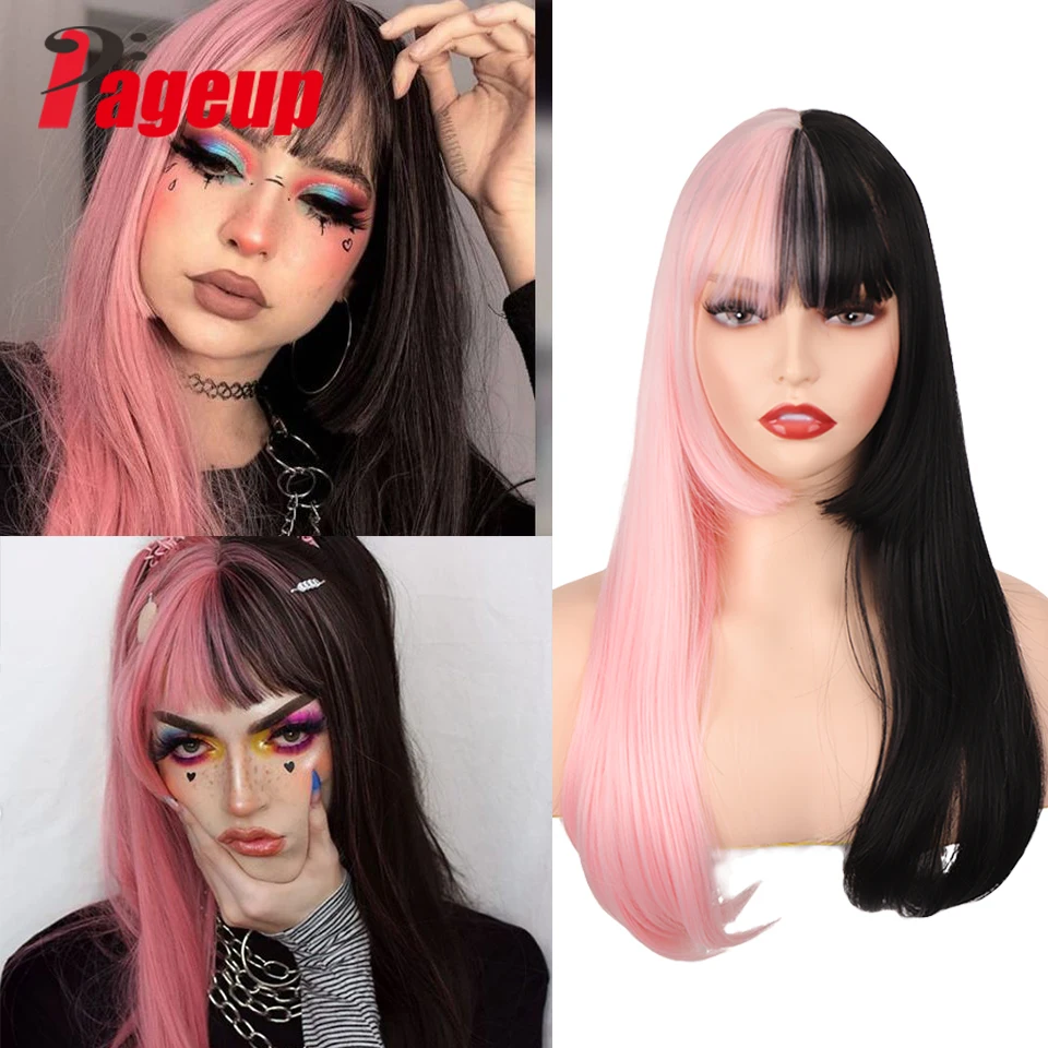 Парик для косплея PAGEUP Женский, длинные прямые синтетические волосы розового и черного цвета, двухцветный, с эффектом омбре