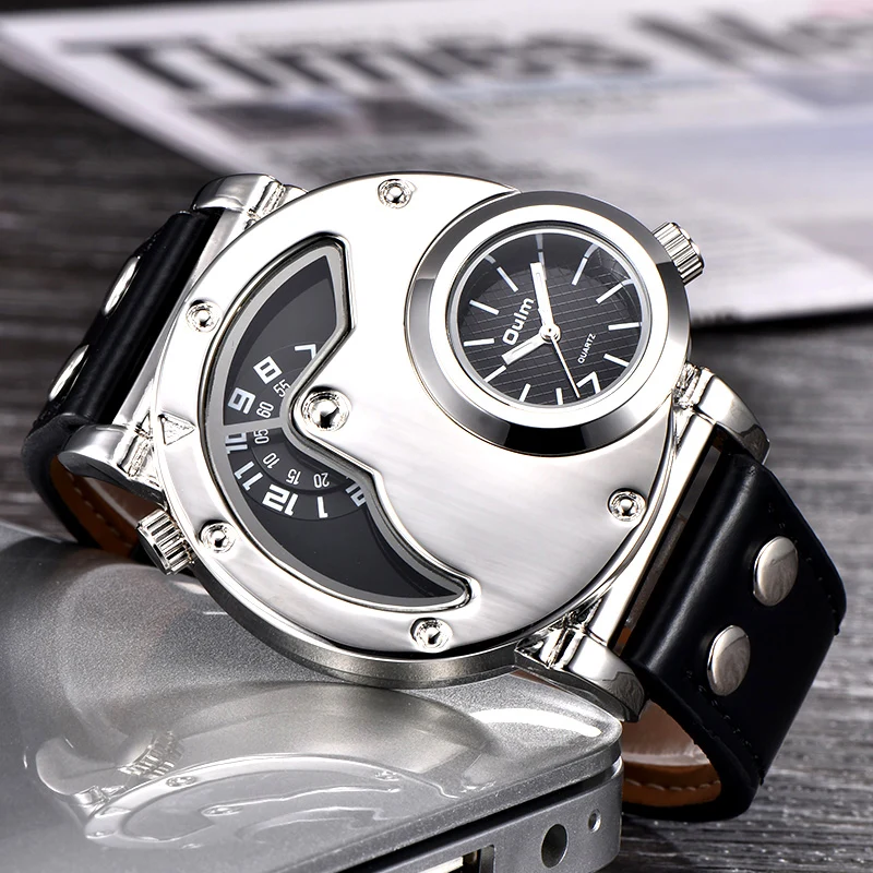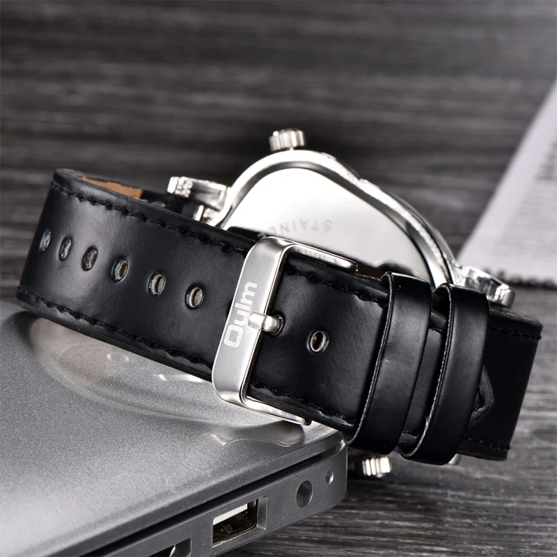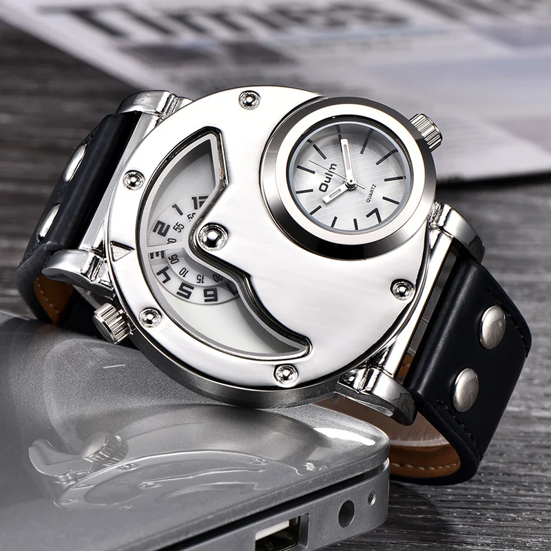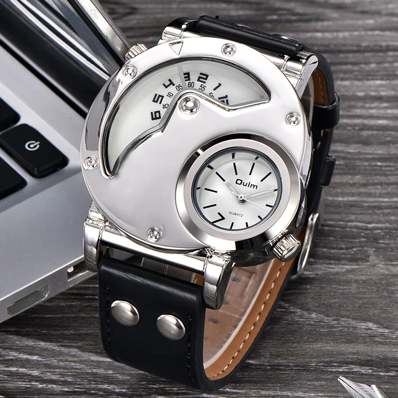 Часы Oulm мужские спортивные, уникальный дизайн, модные наручные часы с несколькими часовыми поясами и кожаным ремешком, кварта