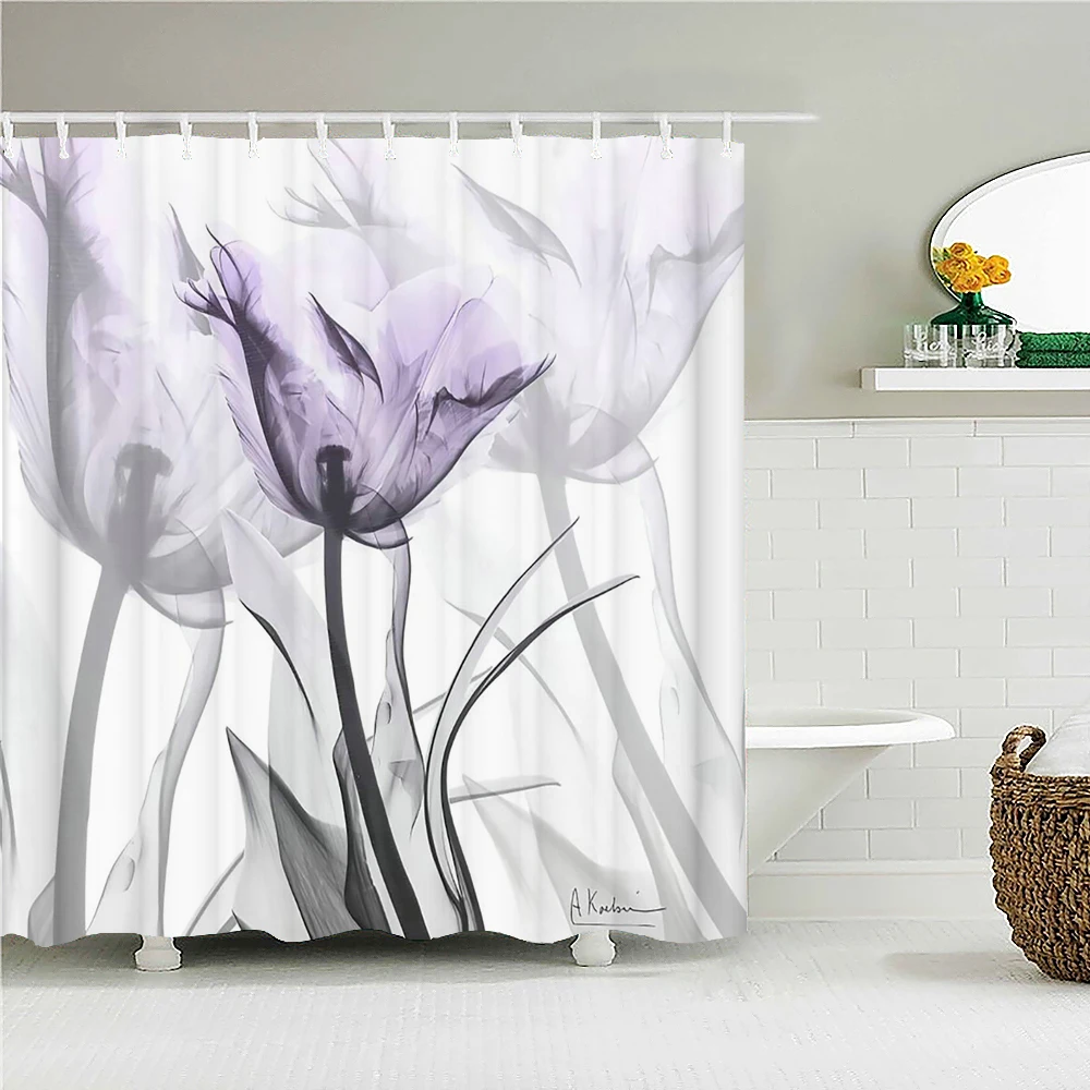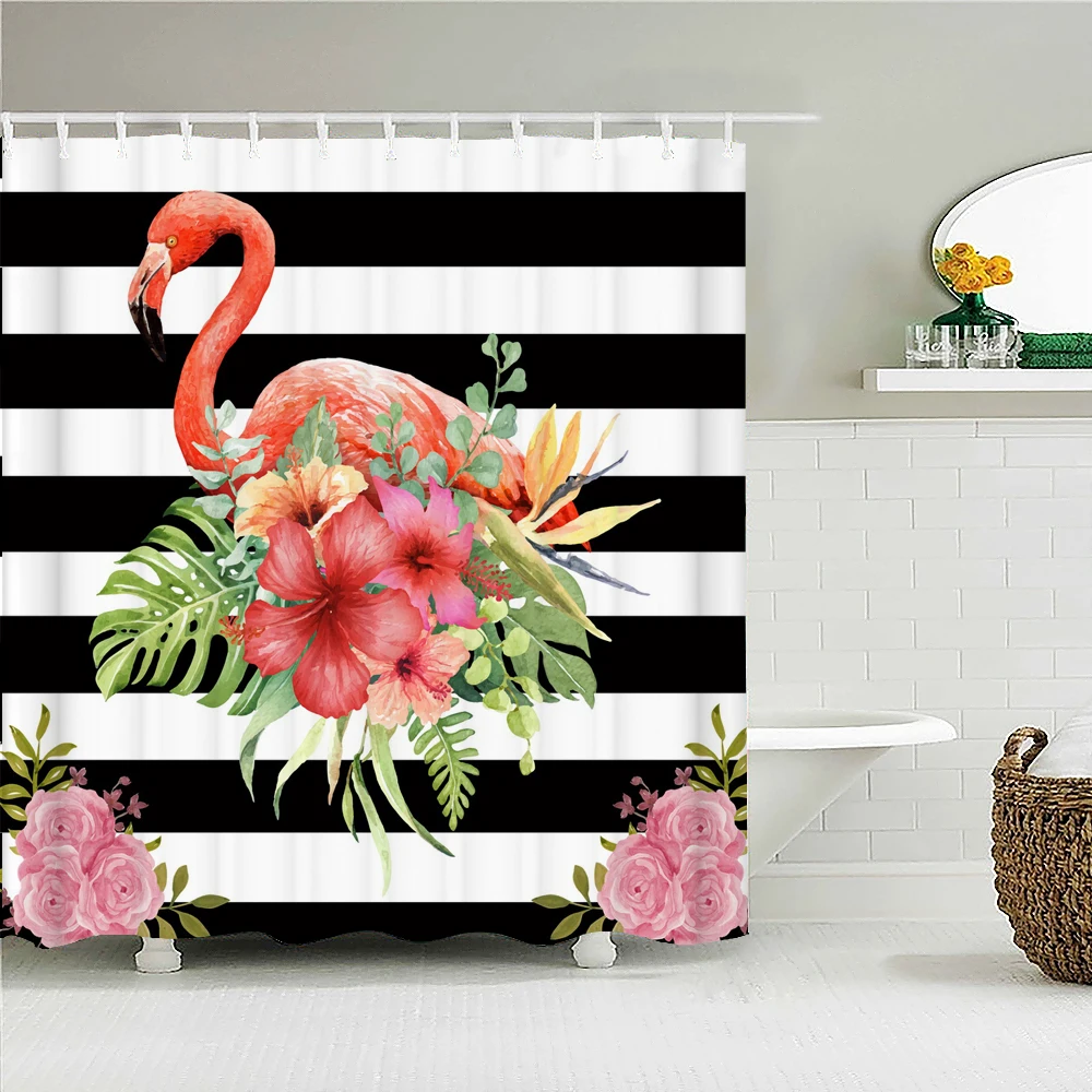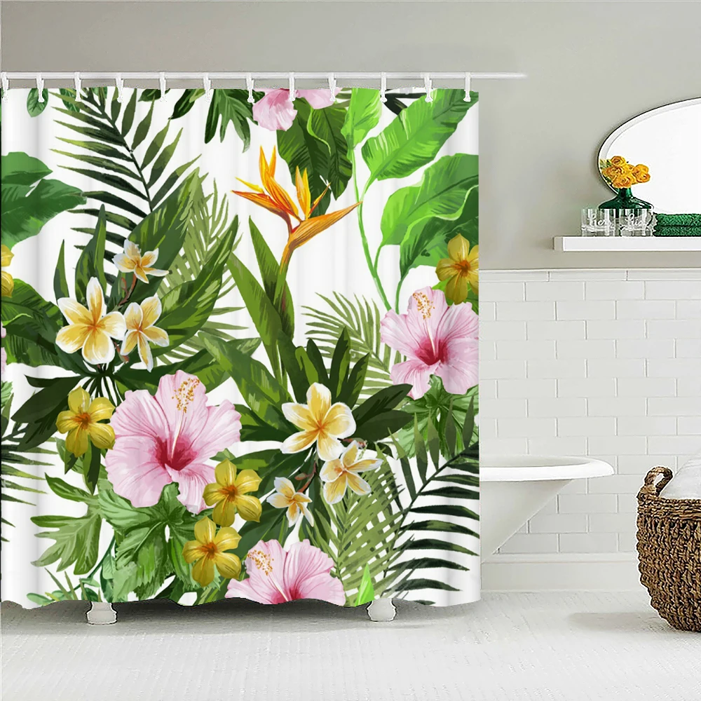 Занавеска для душа с цветами, растениями, занавеска для душа в ванную комнату, 3D занавеска для ванной из ткани с крючками, Бабочка, фламинго, водонепроницаемый экран для ванной