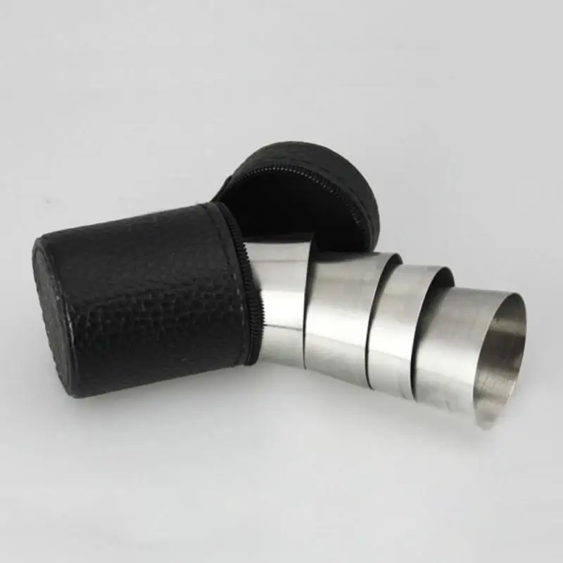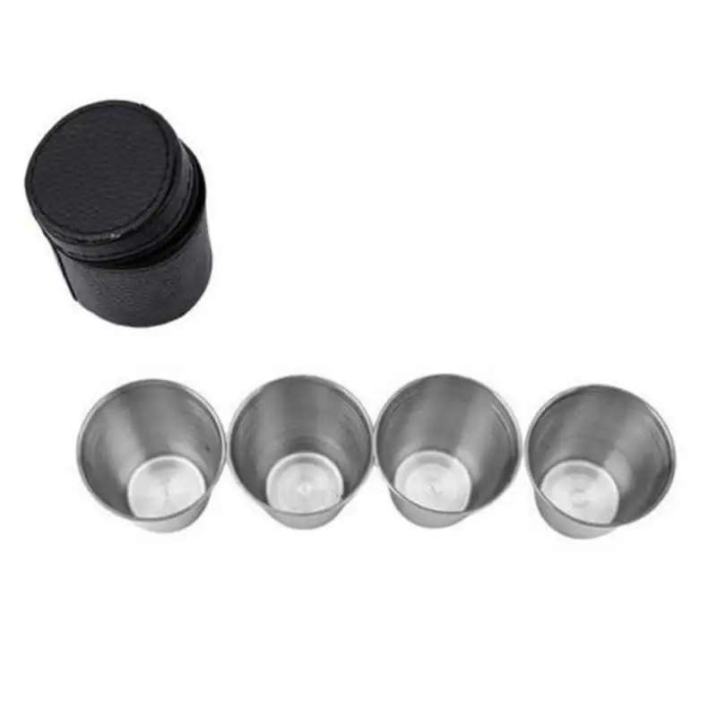 4 шт.компл. полированные 30 мл мини стаканы из нержавеющей стали для выстрела бокалы для питья вина бокалы с кожаным чехлом Сумка Для Дома кухни Ba