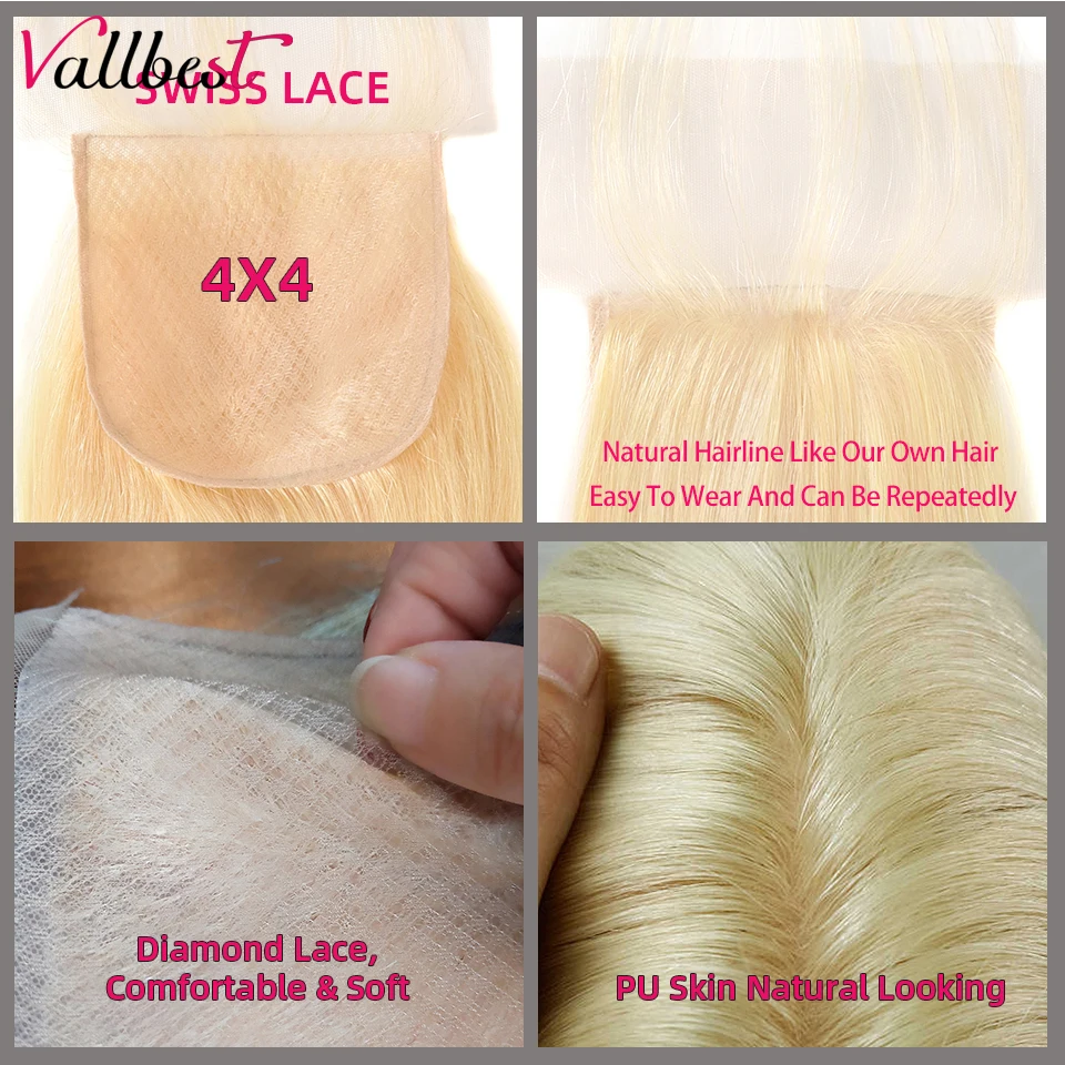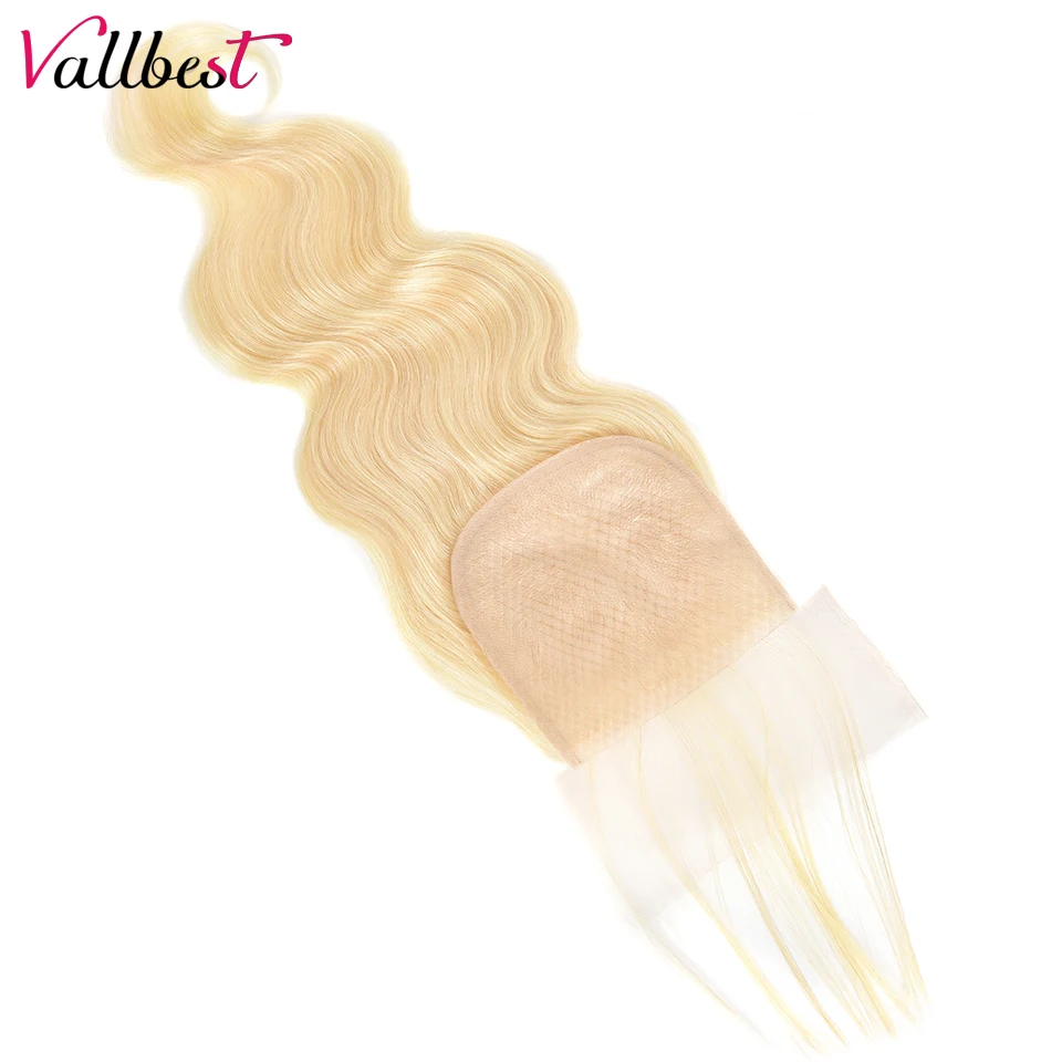 Vallbest 4x 4 шелковая основа закрытие 613 светлые волнистые волосы Remy PU кружевное закрытие человеческие волосы закрытие предварительно выщипанные с детскими волосами