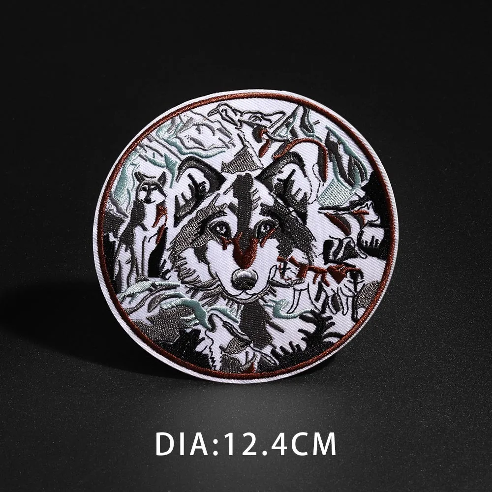Круглая черная нашивка в виде НЛО с изображением животного, волка, нашивка с вышивкой, аппликация для куртки, одежды, аксессуары для одежды своими руками