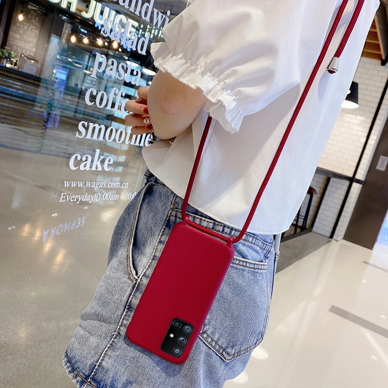Роскошные шнурки ожерелье ремень держатель мягкий силиконовый чехол для мобильного телефона для Samsung Galaxy A52 A72 A32 A12 5G A41 A21S A81 A91 M60S M80S
