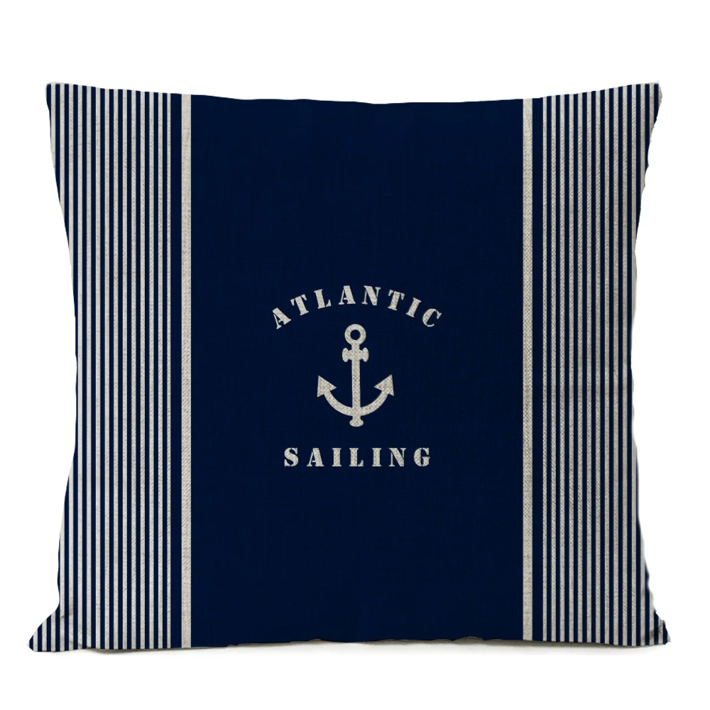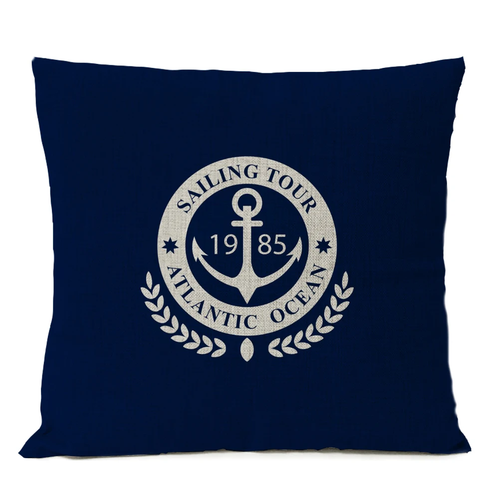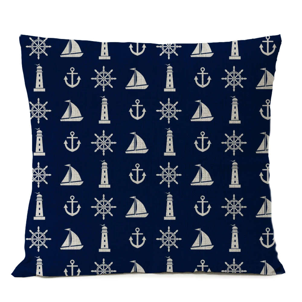 Декоративная синяя льняная наволочка для подушки с изображением морских ракушек и рыб, чехол для подушки в средиземноморском стиле, 45