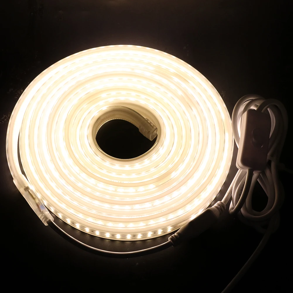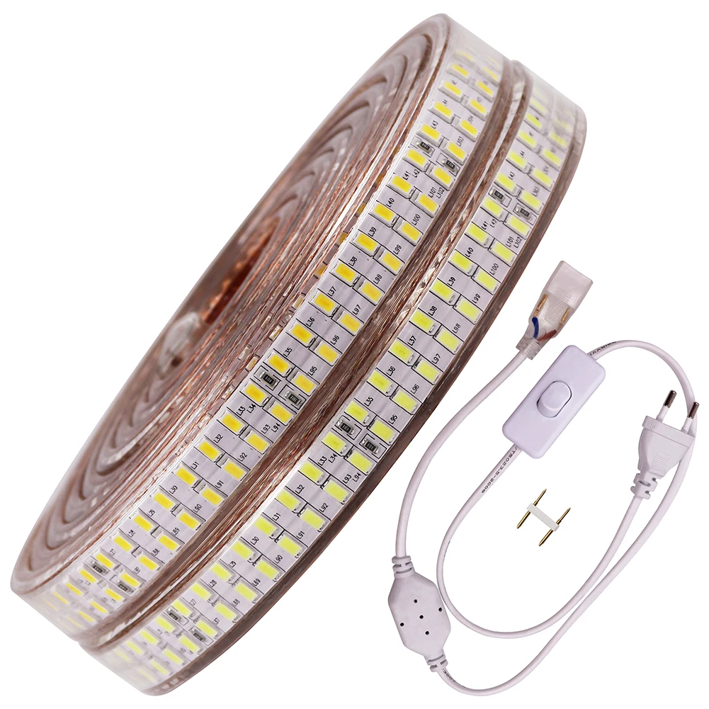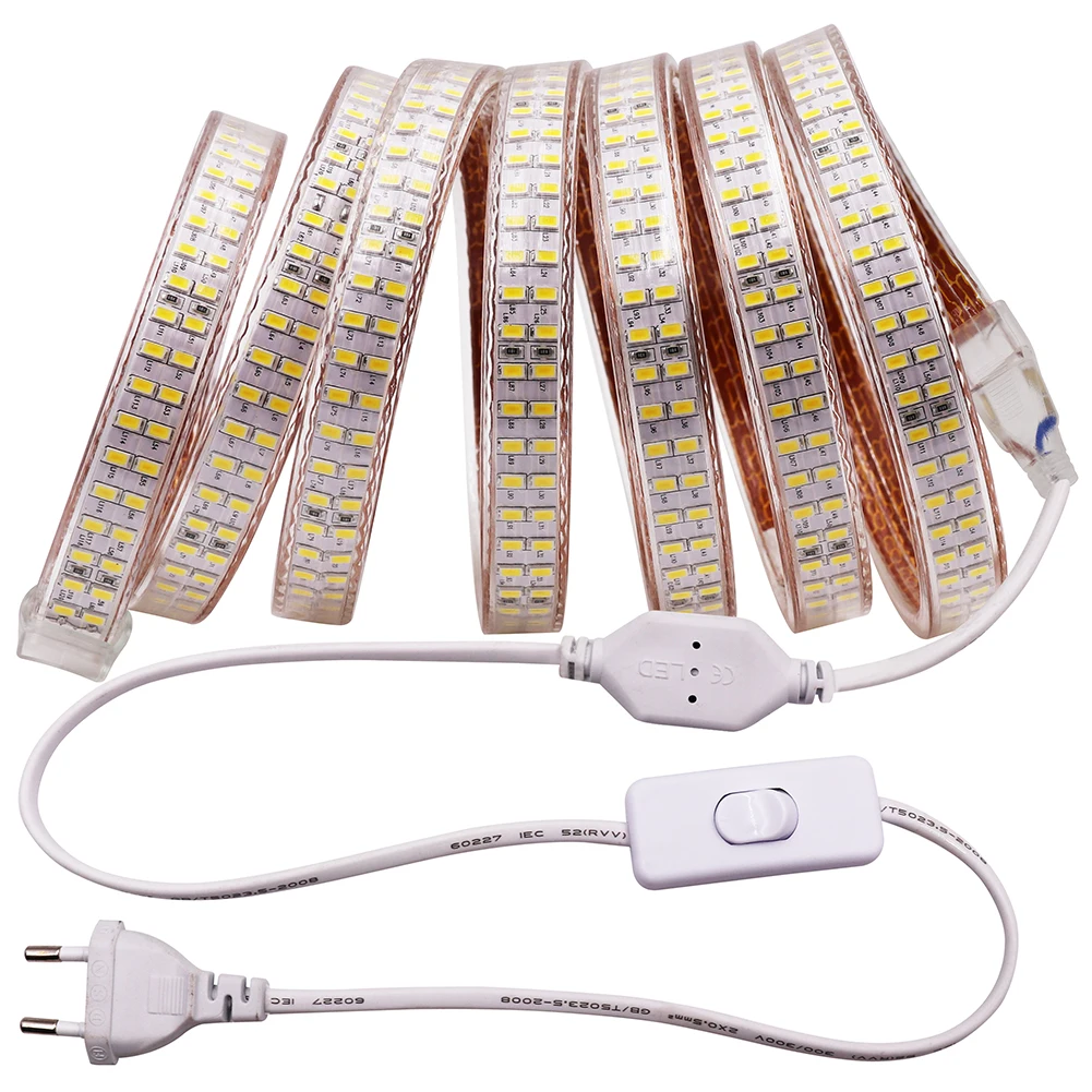 220V Светодиодные ленты супер яркий 5730 240 светодиодовM гибкая лента светодиодный светильник s с двойным рядом камней на открытом воздухе Водонепроницаемый светодиодный светильник пропилен-каучука прокладки с переключатель
