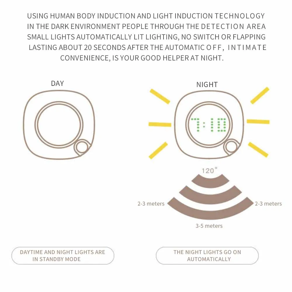 Умный индукционный светильник для человеческого тела, настенные часы, светодиодный ночной Светильник для спальни