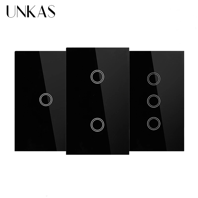 Смарт-переключатель UNKAS, стандарт США, 1 2 3 комплекта, 1 канал, одна линия огня, настенный светильник, сенсорная функция, Хрустальное стекло