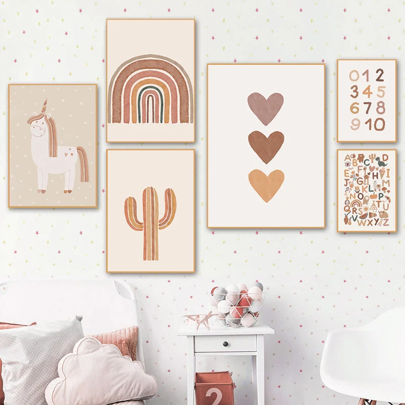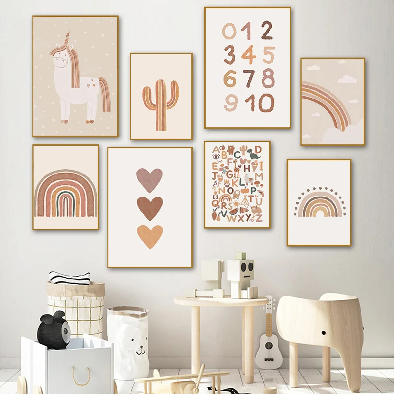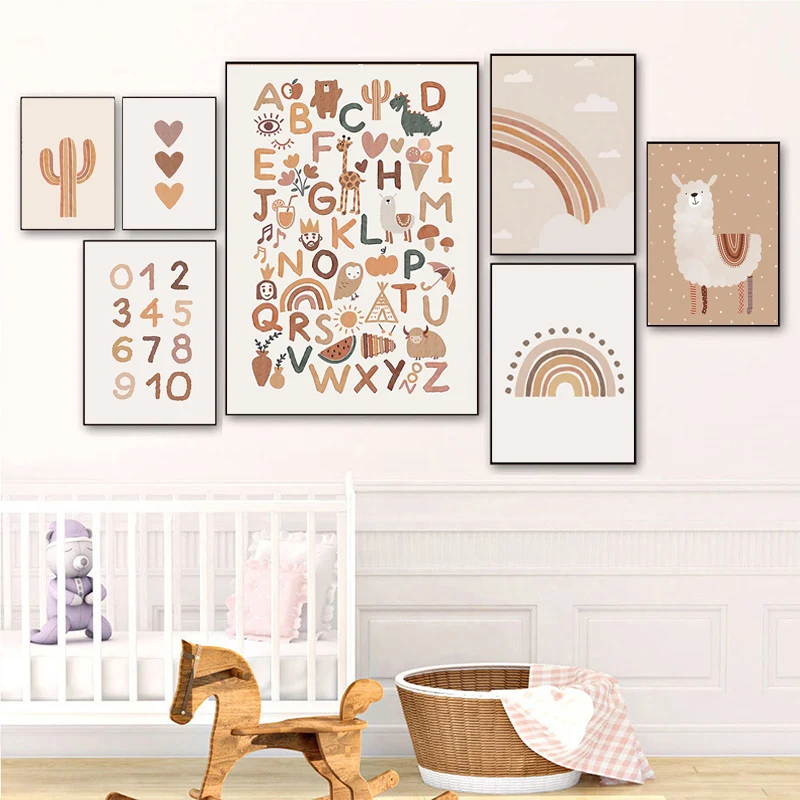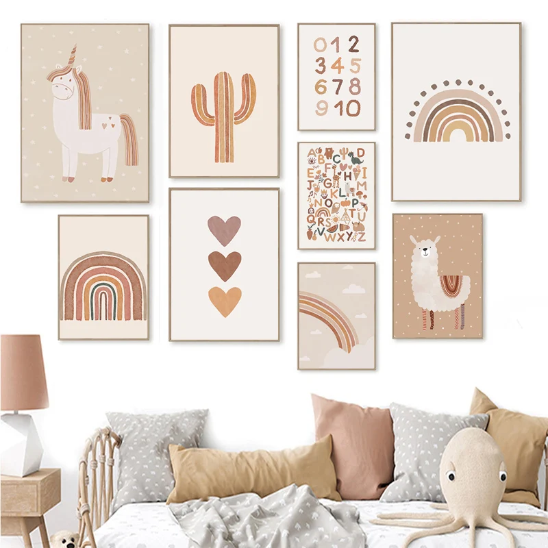 Художественный холст для детской стены с принтом медведь альпака постеры ABC постер радужная картина единорог печать скандинавские настенные картины декор для детской комнаты