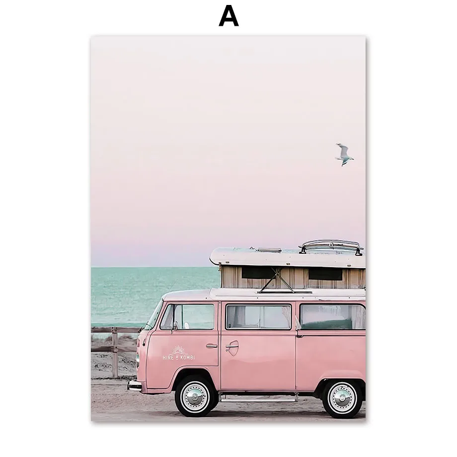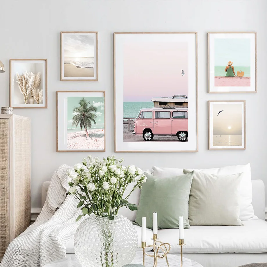 Бежевая трава закат пляж Пальма автомобиль настенная Картина на холсте скандинавские плакаты и принты настенные картины для декора гостиной