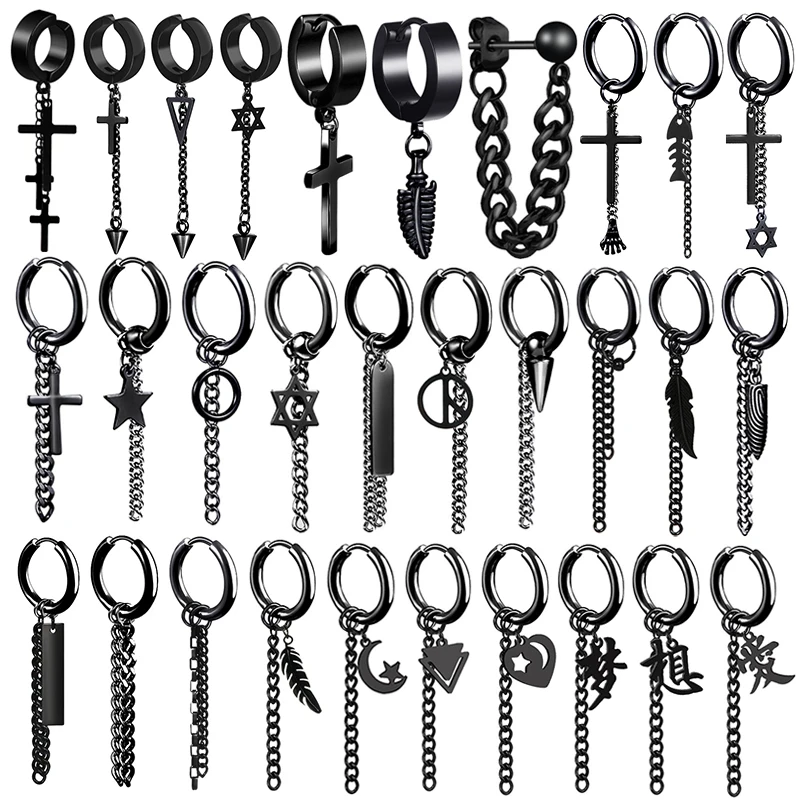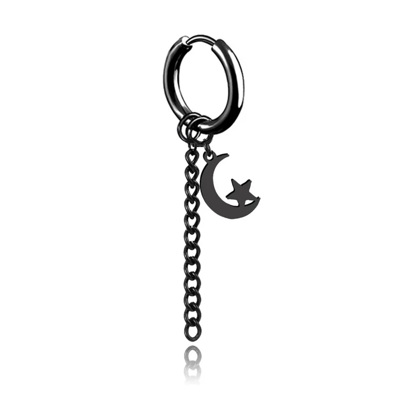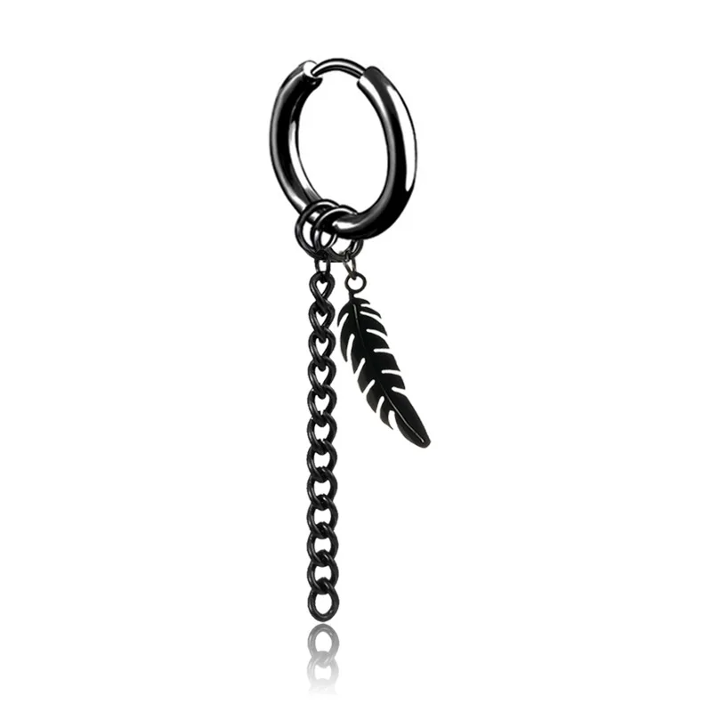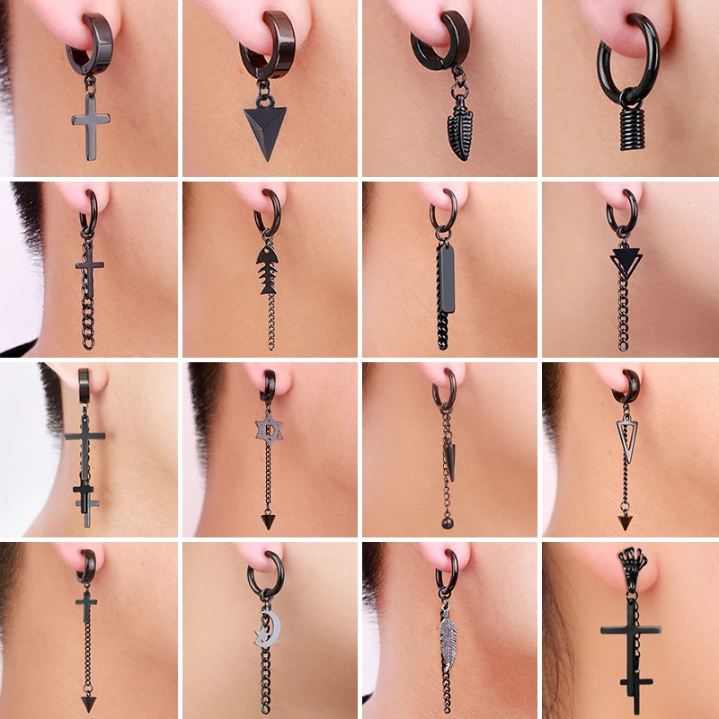 Серьги-кольца унисекс в виде креста, Луны, звезды, Листьев, геометрической формы, мечты, рыбы, пера, сердца, любовь, рок, для мужчин, стальной сплав с титаном