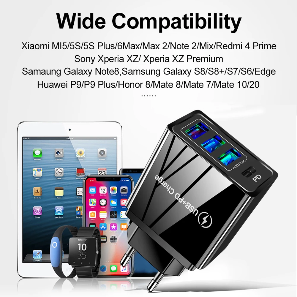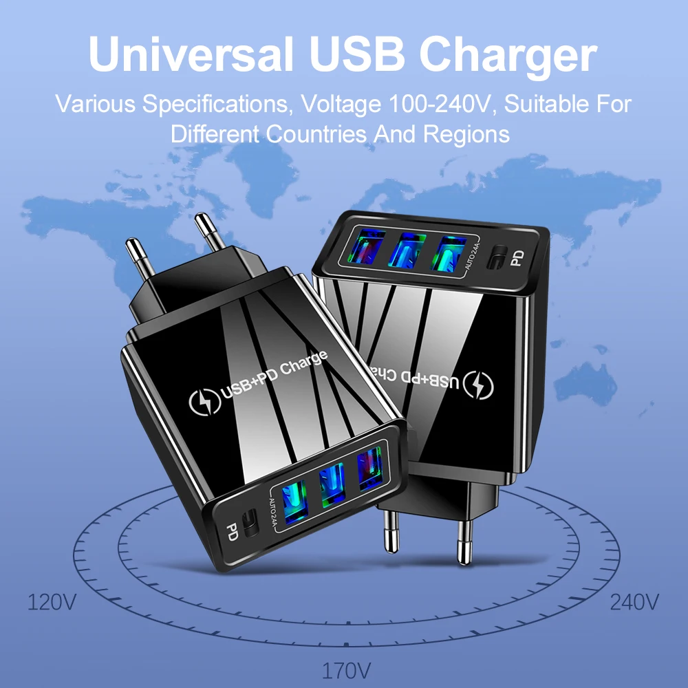 Зарядное устройство PD с USB-портом и поддержкой быстрой зарядки, 2...
