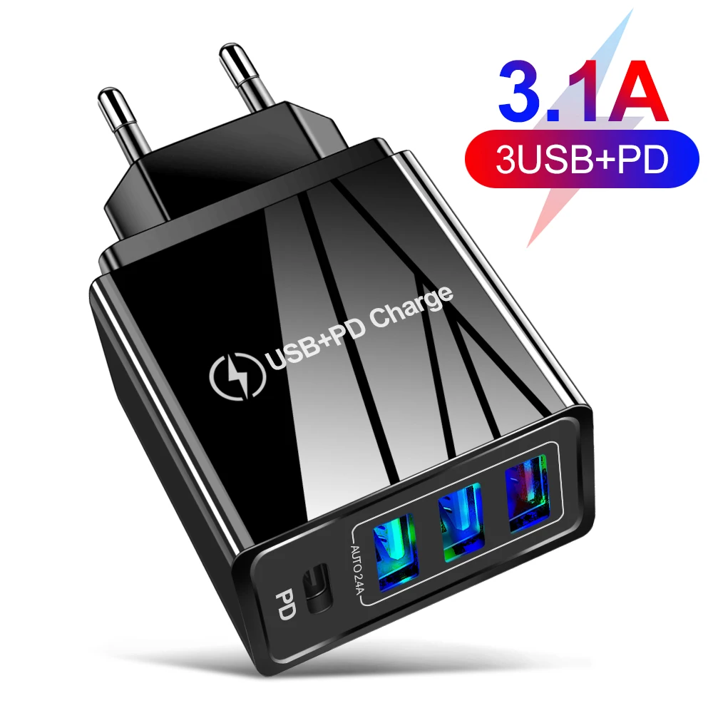 Зарядное устройство для телефона, 3,1 А, PD20W + QC3.0, 2 USB-порта