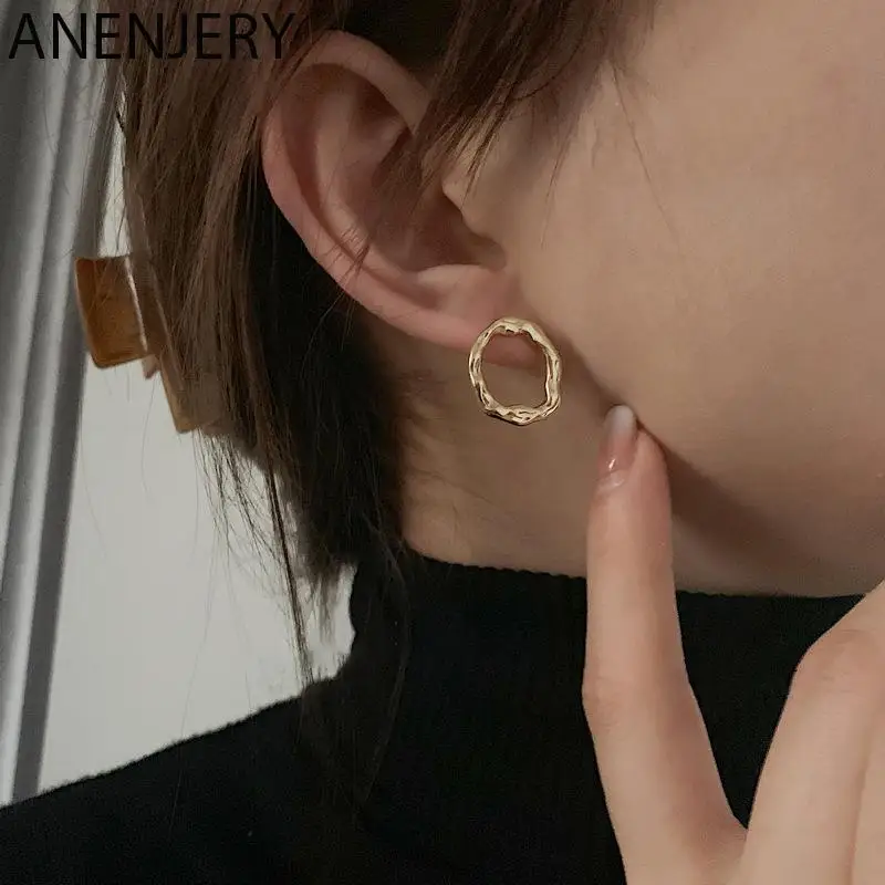 Женские серьги-гвоздики серебряного цвета ANENJERY, золотистые геометрические серьги неправильной формы, Ювелирное Украшение