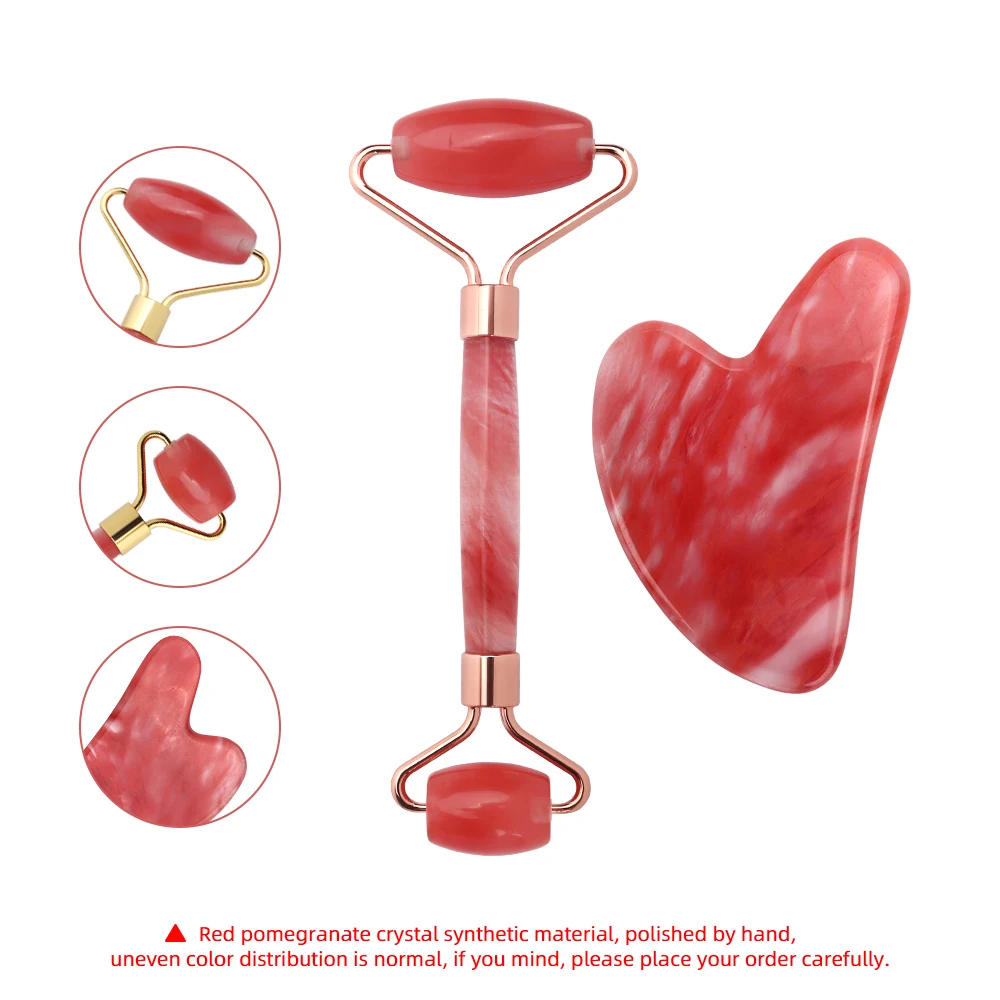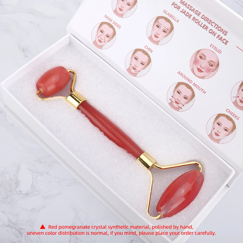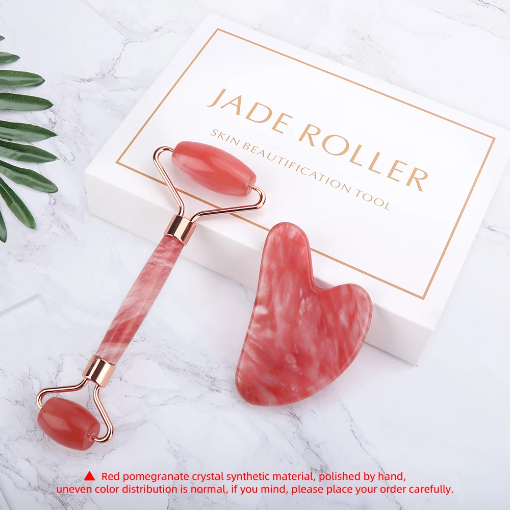 2 вида, скребок для лица Guasha, синтетический массажер для лица с красным гранатом, Нефритовый ролик для подтяжки лица, для похудения и подбородка
