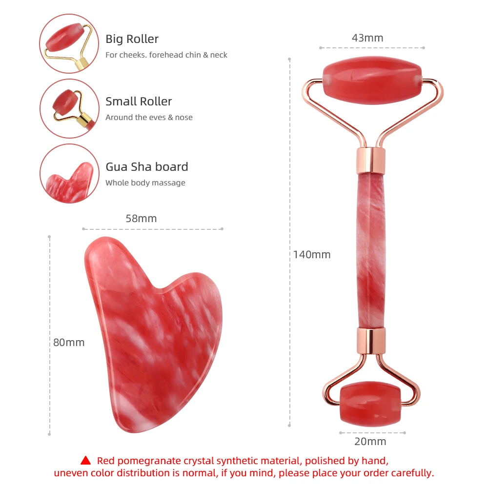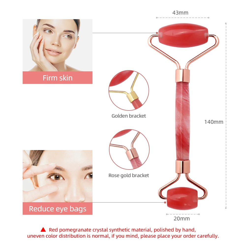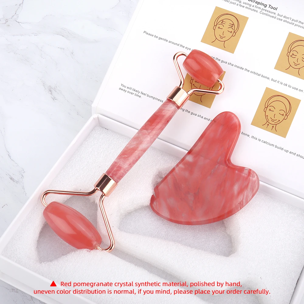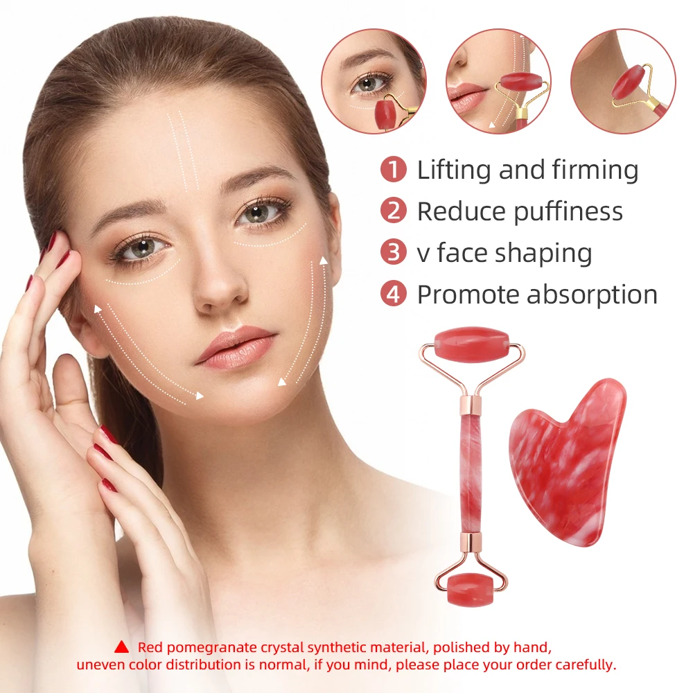 2 вида, скребок для лица Guasha, синтетический массажер для лица с красным гранатом, Нефритовый ролик для подтяжки лица, для похудения и подбородка