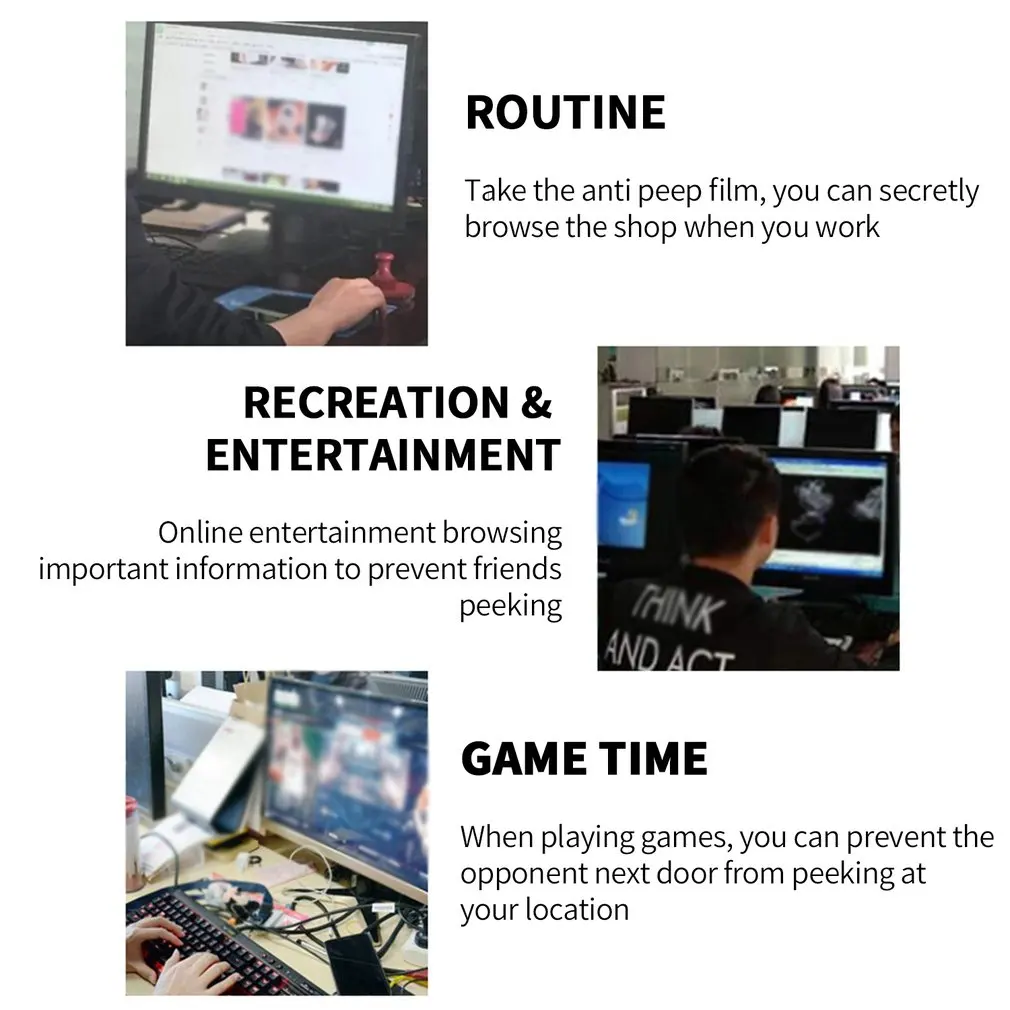 2. Безопасность: Темный экран для других, четкое видение для вас. Фильтр компьютера делает экран темным при просмотре под углом (угол около 30 °-60 °), но ярким при просмотре напрямую. Чтобы изменить угол от 60 ° до 30 °, просто Отрегулируйте уровень яркости вашего мониторинга.