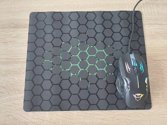 Коврик качественный. Мышь бегает отлично. Единственный минус - коврик с одного края пришел с заломом, так как упаковано в простой пакет.