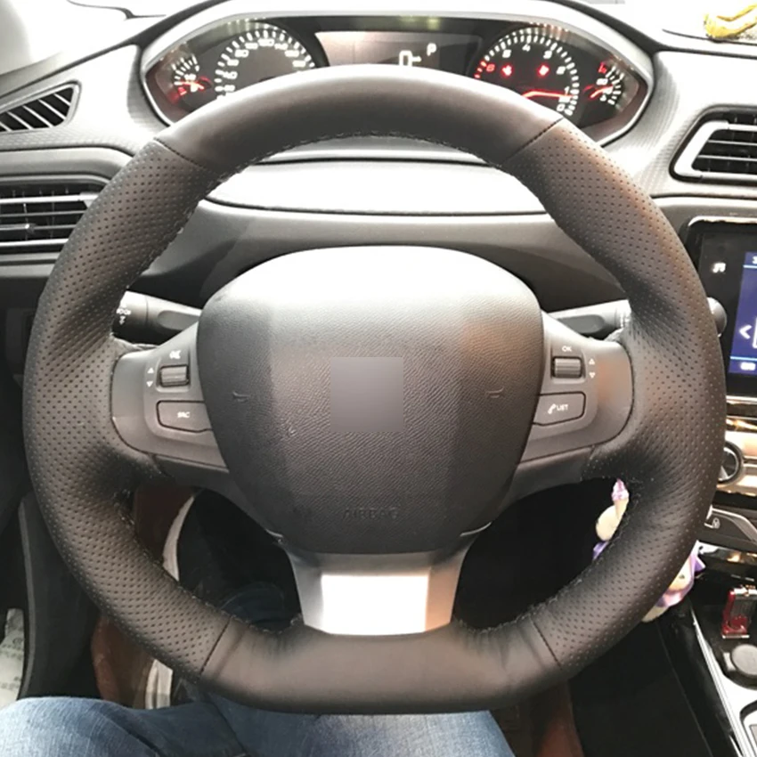 Черная искусственная кожа Handsewing без скольжения чехол рулевого колеса автомобиля для Peugeot 308 2014 2015 2016 2017 2018 2019