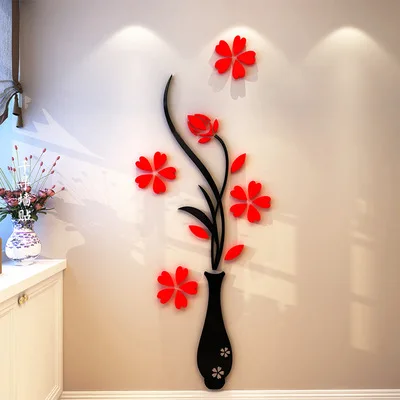 DIY 3D цветок дерево наклейки на стену хрустальная красная ваза Arcylic настенный декор цветочные наклейки для гостиной наклейка прямая поставкаОписание: