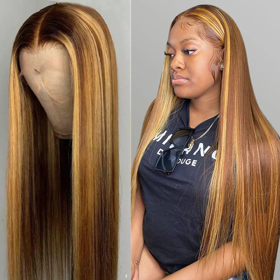Цветной парик из 427 прямых T-образных волос для женщин, 13 х4, 28 ...