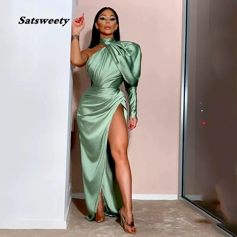 Женское вечернее платье с одним открытым плечом, длинное изумрудно-зеленое платье-Русалка с разрезом сбоку, платье для выпускного вечера и вечеривечерние, платья знаменитостей с лямкой на шее