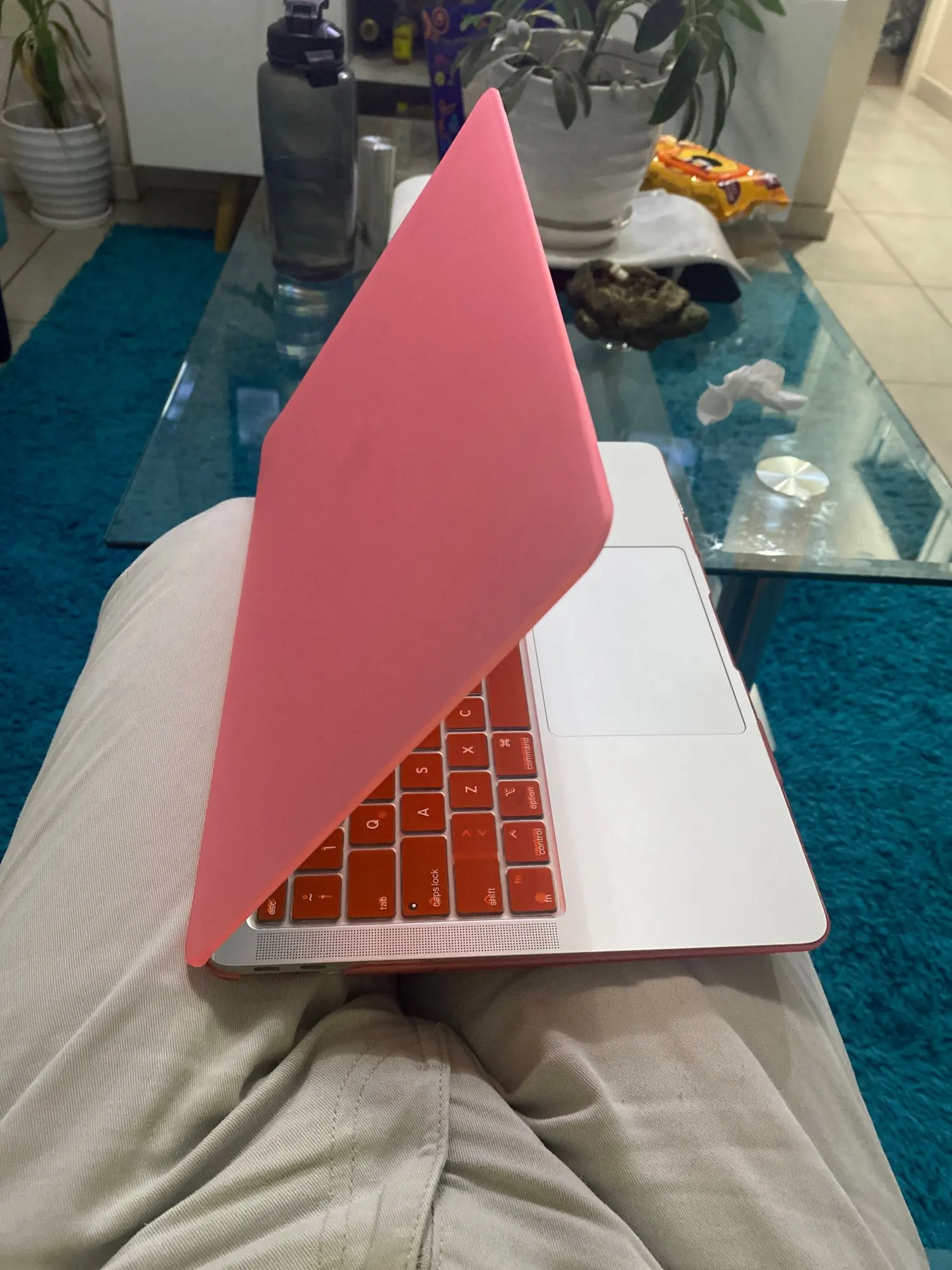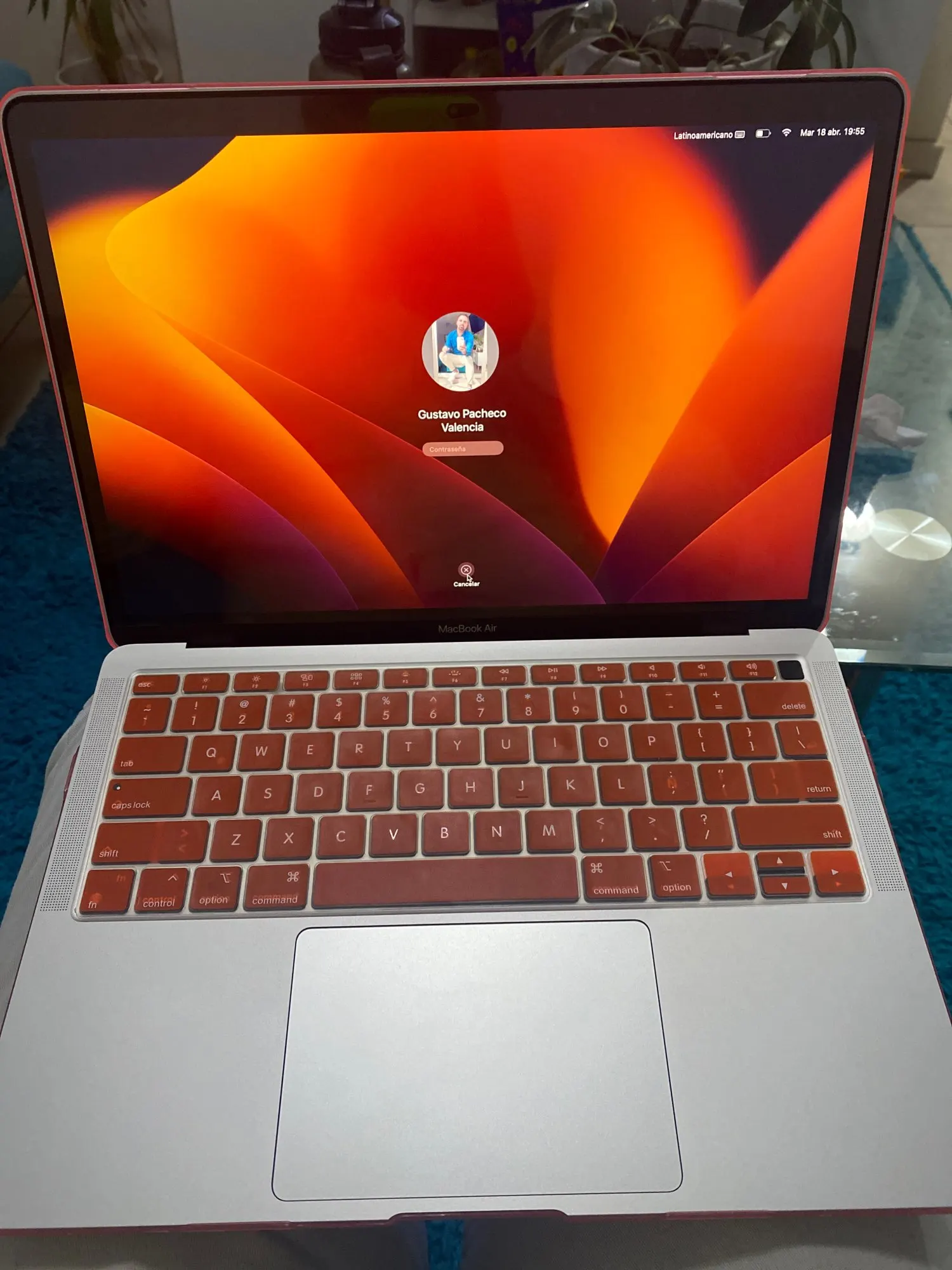 Мне бы хотелось больше оранжевого цвета, как видно на фото, он довольно розовый, он соответствует полосам со сроком поставки. Это заняло гораздо меньше времени, чем планировалось, на клавиатуре Резина не совпадает с некоторыми клавишами. Но он выполняет функцию покрытия моего MacBook