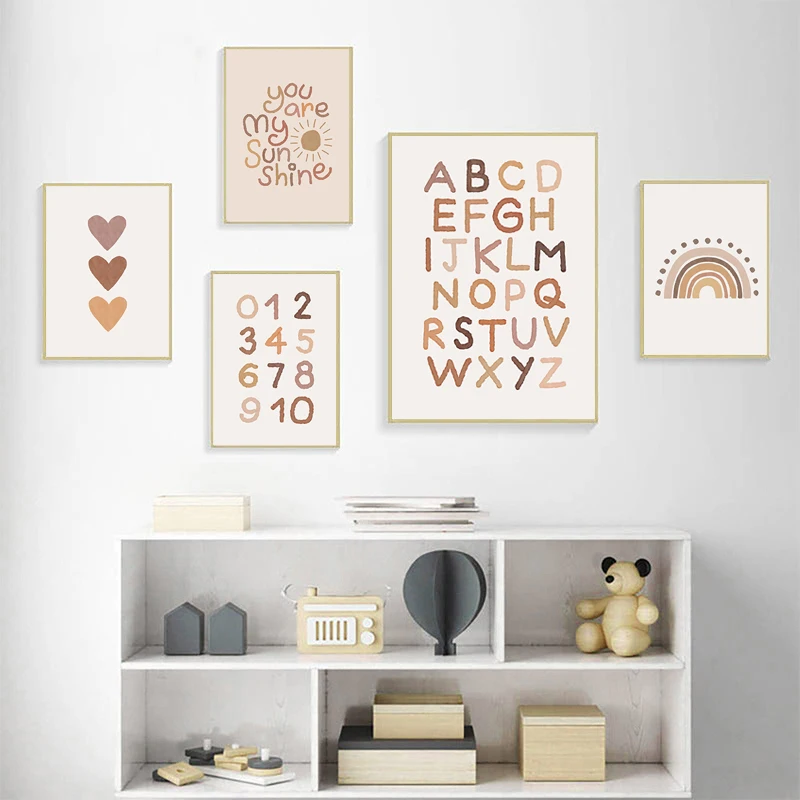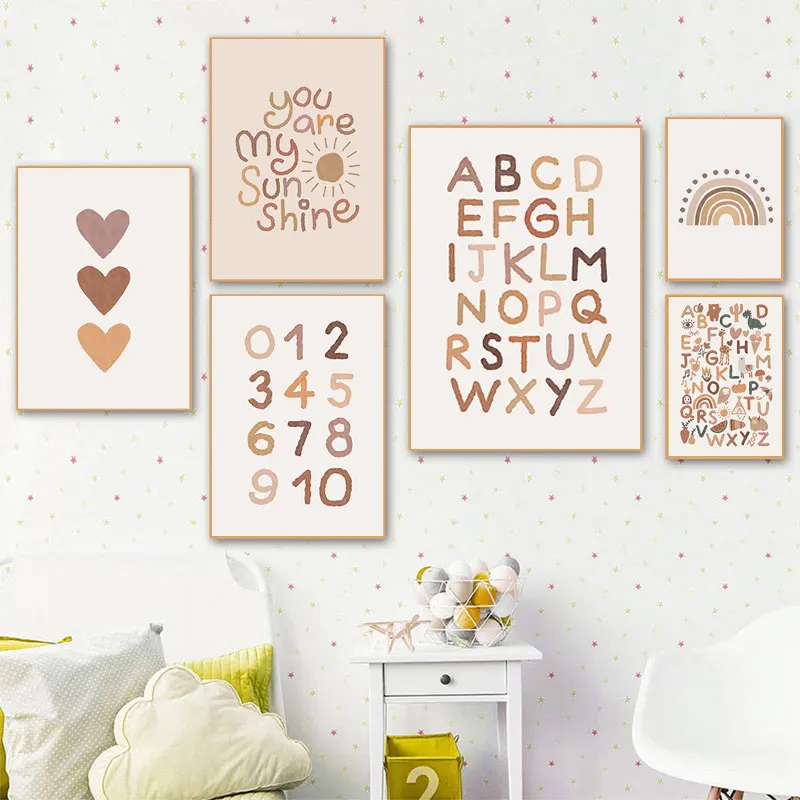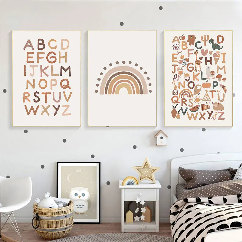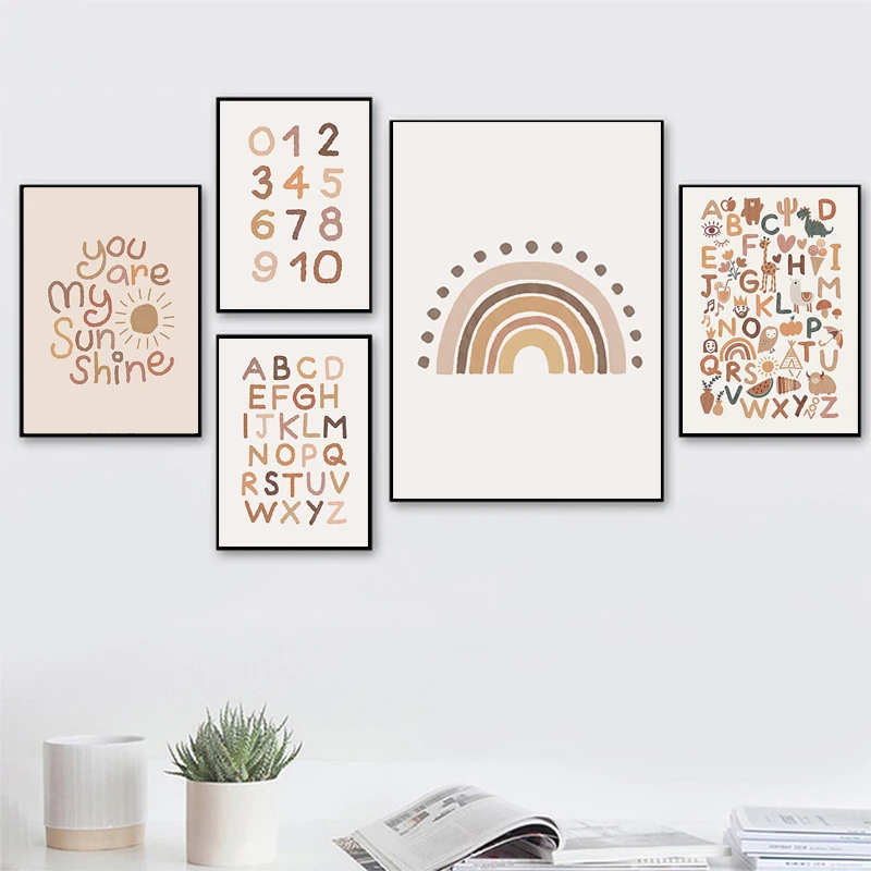 ABC плакат солнечный холст картина радуга печать детской стены художественные принты бохо настенные картины для детской комнаты декоративные постеры