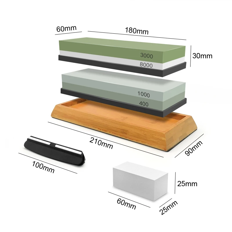 Профессиональный набор точильных камней, точилка для ножей с зернистостью 400100030008000, двухсторонний точильный камень, нескользящий базовый резак, шлифовальный камень