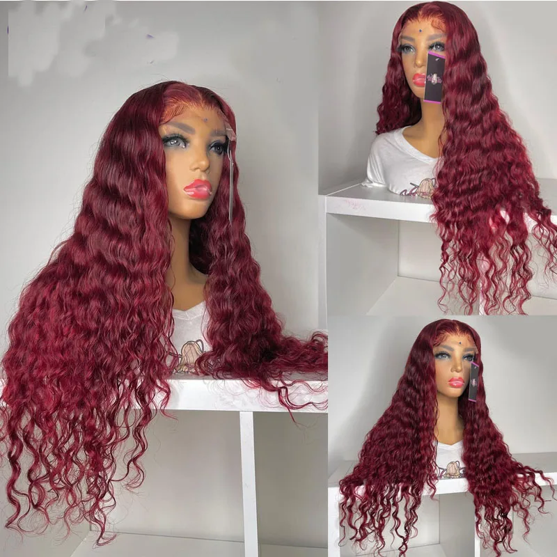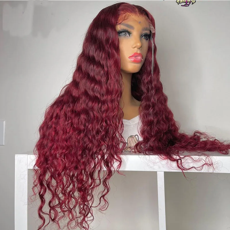 Винно-красный афро кудрявый синтетический кружевной передний парик ...
