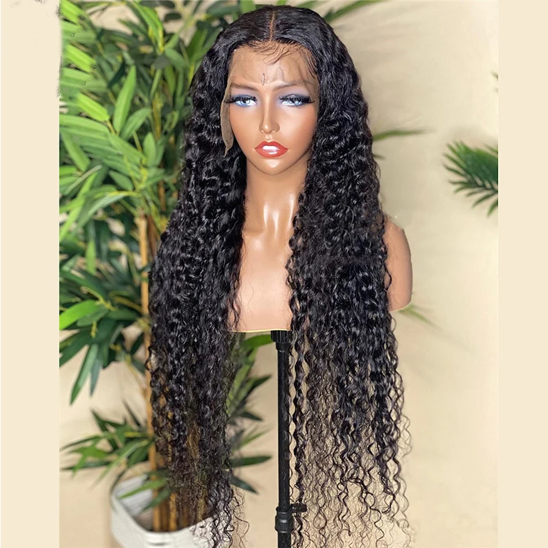 Черные свободные волнистые синтетические кружевные передние парики ...