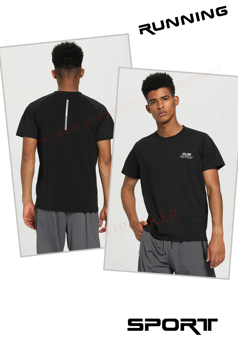 Мужские быстросохнущие футболки для бега с коротким рукавом, светоотражающие футболки с принтом для ночного бега, фитнеса, многоцветные дышащие тренировочные футболки для тренажерного зала